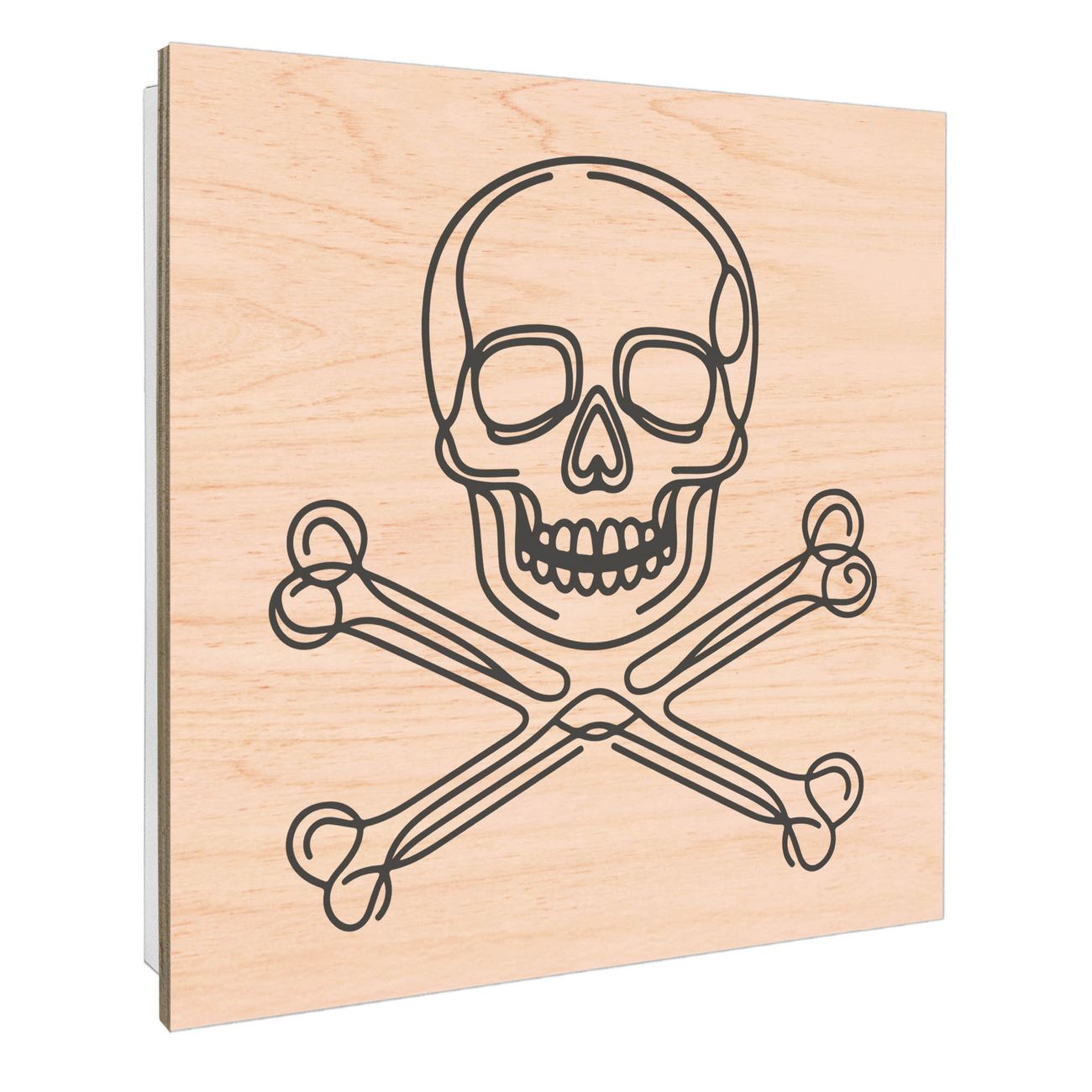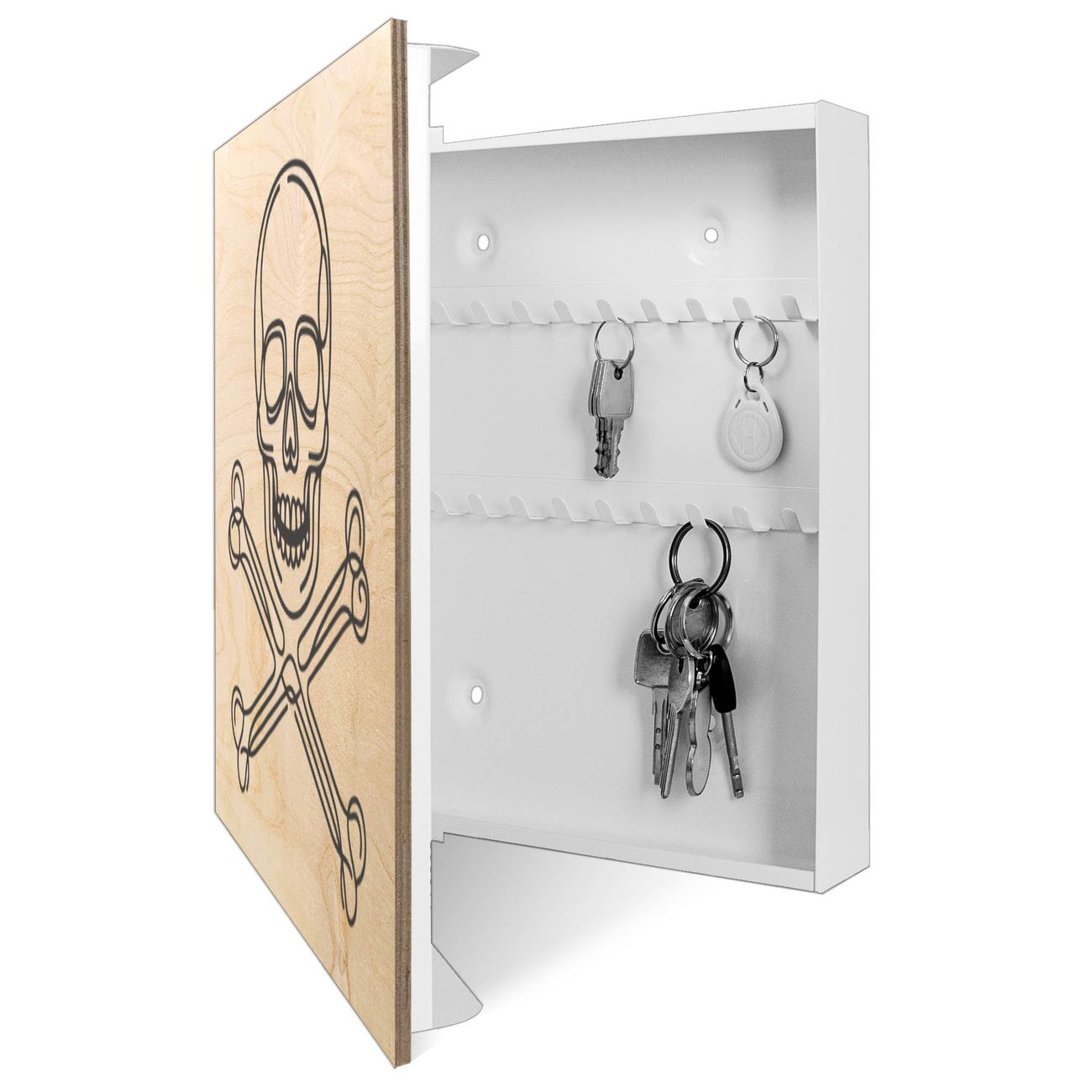 Schlüsselkasten mit Holzfront - Design Schlüsselbox Motiv Totenkopf und Knochen