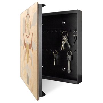 Schlüsselkasten mit Holzfront - Design Schlüsselbox Motiv Traumfänger Mond und Federn