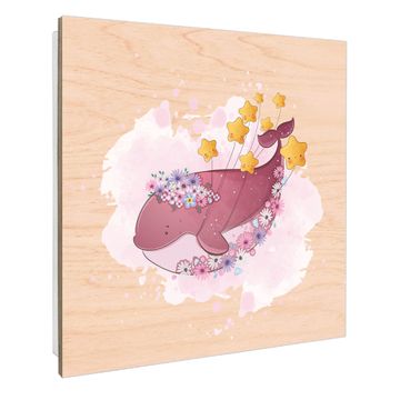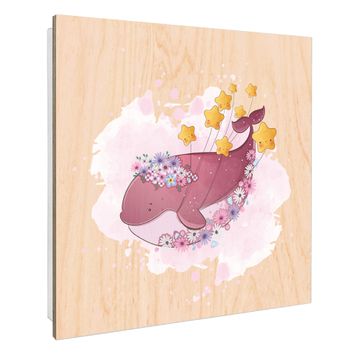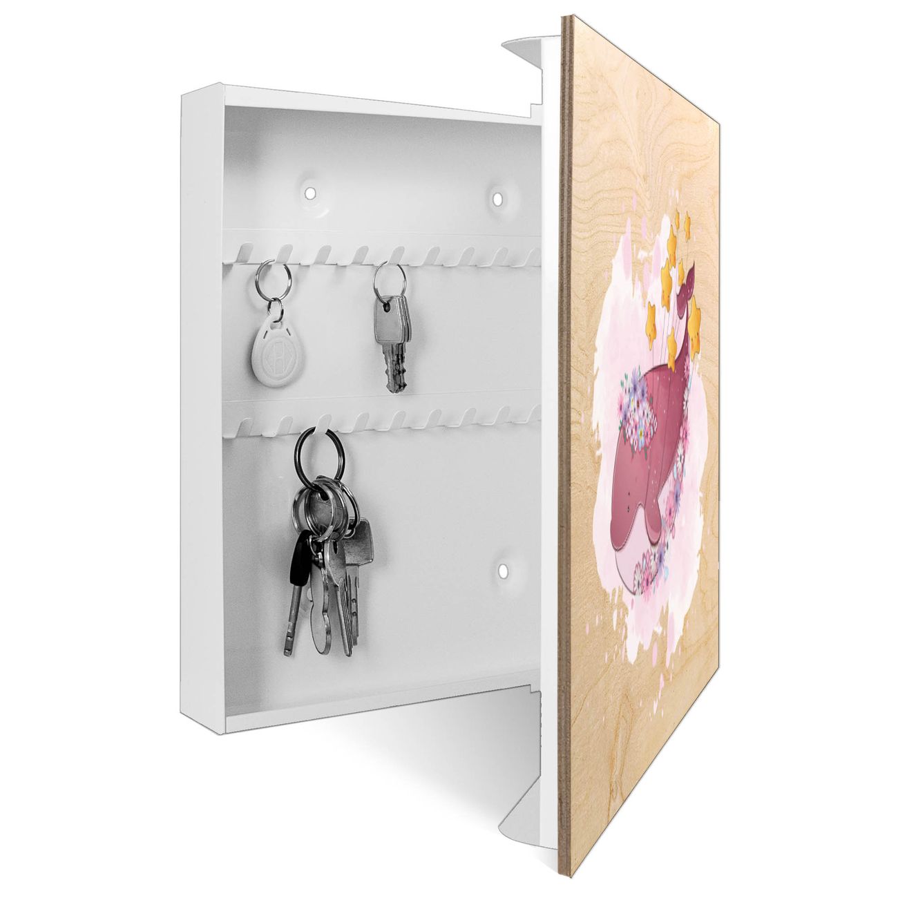 Schlüsselkasten mit Holzfront - Design Schlüsselbox Motiv Traumwal mit Sternen
