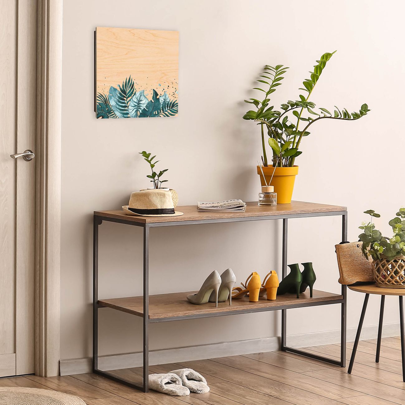 Bringe Ordnung und Eleganz in deinen Eingangsbereich mit dem banjado Schlüsselkasten Motiv Motiv Tropisches Aquarell. Die moderne Schlüsselbox kombiniert funktionales Design mit hochwertiger Verarbeitung und wird so zu einem echten Hingucker in Flur, Büro oder Ferienwohnung. ✅ Stilvolle Schlüsselaufbewahrung mit moderner Holzfront im Motiv Motiv Tropisches Aquarell Der Design-Schlüsselkasten Motiv Motiv Tropisches Aquarell bietet Platz für bis zu 50 Schlüssel, die auf 5 stabilen Reihen mit je 10 Haken übersichtlich verstaut werden. Mit seinen kompakten Maßen von 30 x 30 x 5 cm passt die Schlüsselbox perfekt auch in kleinere Räume. Der schwarz lackierte Korpus mit dem Scharnier auf der rechten Seite harmoniert mit der bedruckten Holzfront und fügt sich nahtlos in jedes Wohnambiente ein. Ob als Schlüsselorganizer für Zuhause oder als praktische Lösung für Büros, Praxen und Gewerbe - der banjado Schlüsselkasten sorgt für Ordnung und Übersicht. Durch die klare Strukturierung der Haken lassen sich auch viele Schlüssel problemlos verwalten. Die Schlüsselbox Motiv Motiv Tropisches Aquarell zur Wandmontage wird inklusive Befestigungsmaterial geliefert und ist schnell angebracht. So hast du deine Schlüssel jederzeit griffbereit und zugleich stilvoll verstaut. Mit diesem banjado Schlüsselkasten Motiv Motiv Tropisches Aquarell kombinierst du praktische Aufbewahrung mit stilvollem Wohndesign. Ob privat oder geschäftlich - die Schlüsselbox sorgt für mehr Ordnung, Übersicht und ein wohnliches Ambiente.Vorteile im Überblick