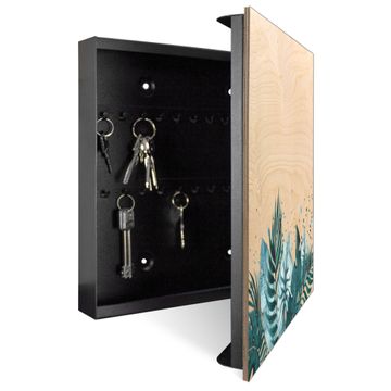Schlüsselkasten mit Holzfront - Design Schlüsselbox Motiv Tropisches Aquarell
