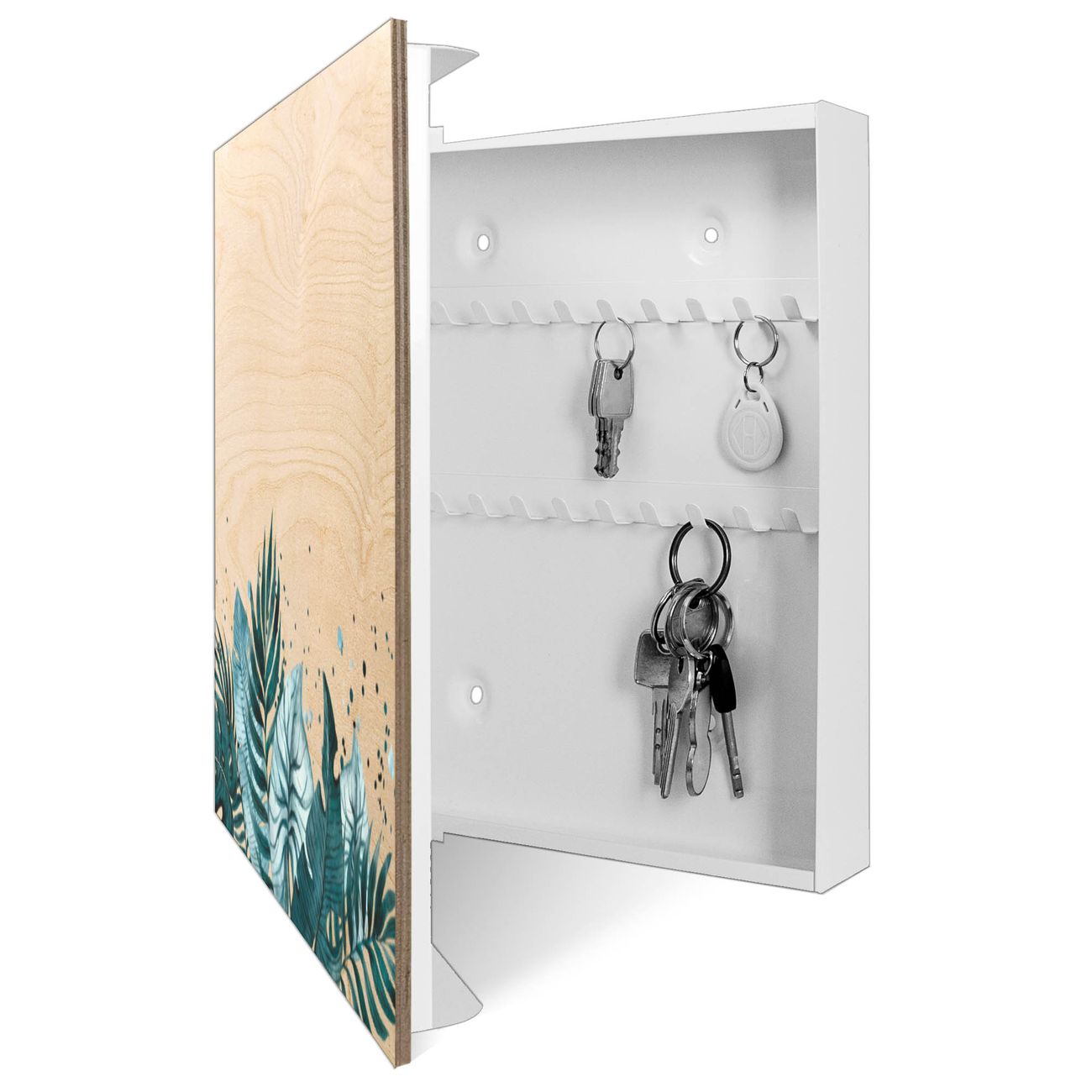 Schlüsselkasten mit Holzfront - Design Schlüsselbox Motiv Tropisches Aquarell