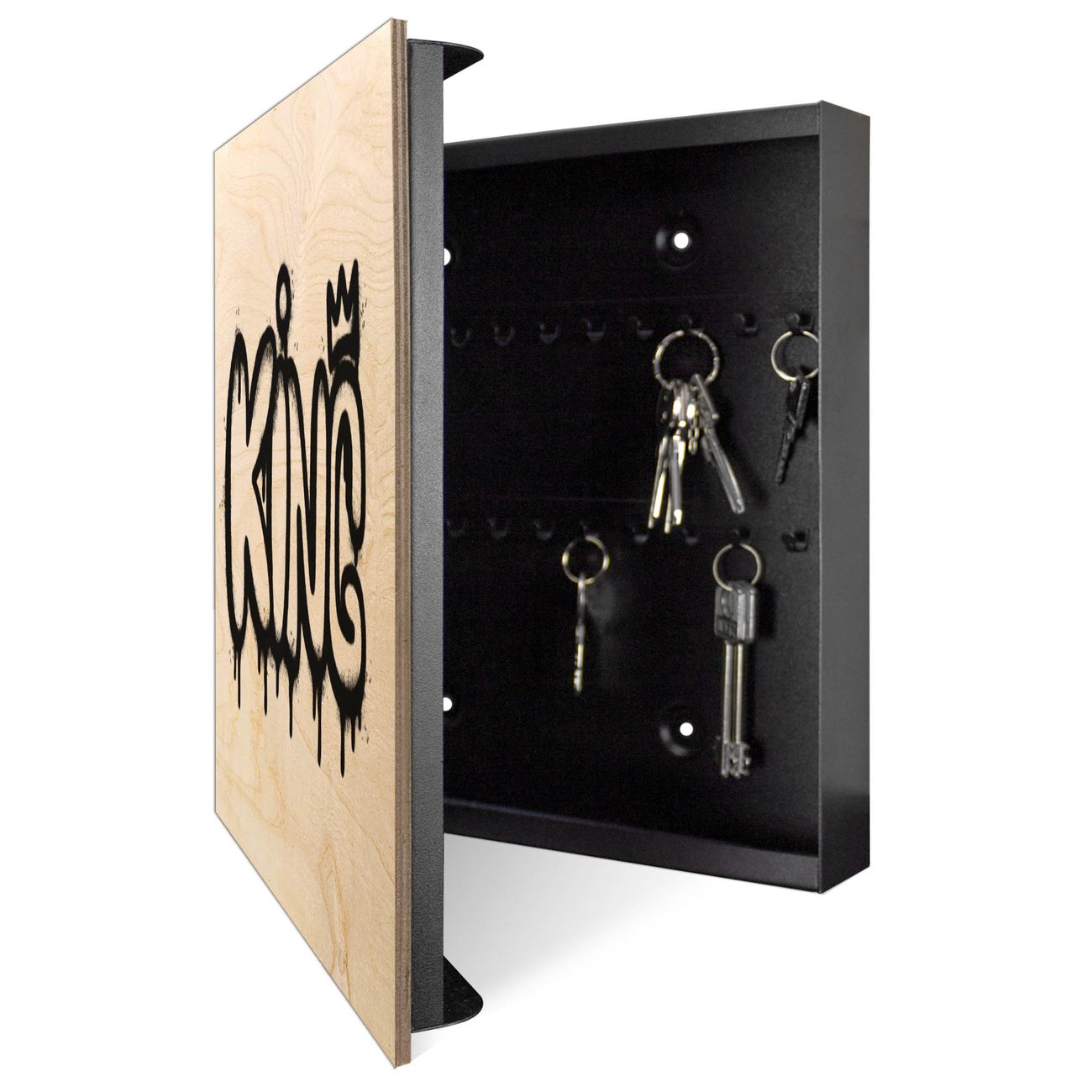 Schlüsselkasten mit Holzfront - Design Schlüsselbox Motiv Urban King Graffiti