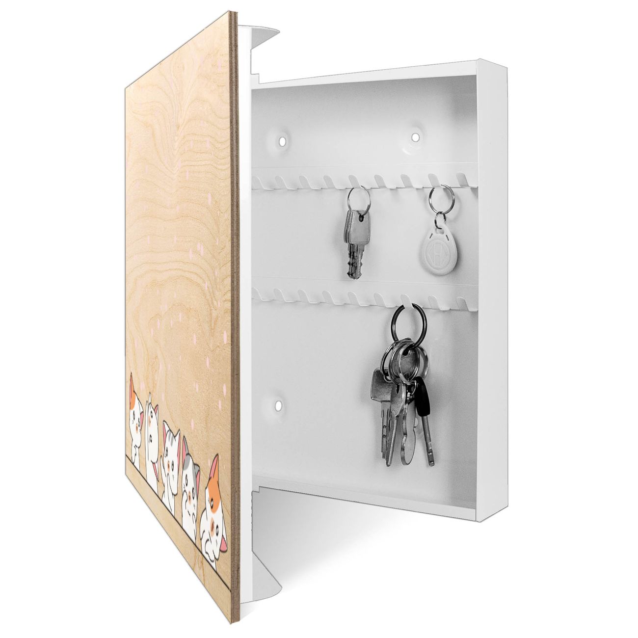 Schlüsselkasten mit Holzfront - Design Schlüsselbox Motiv Verspielte Kätzchen