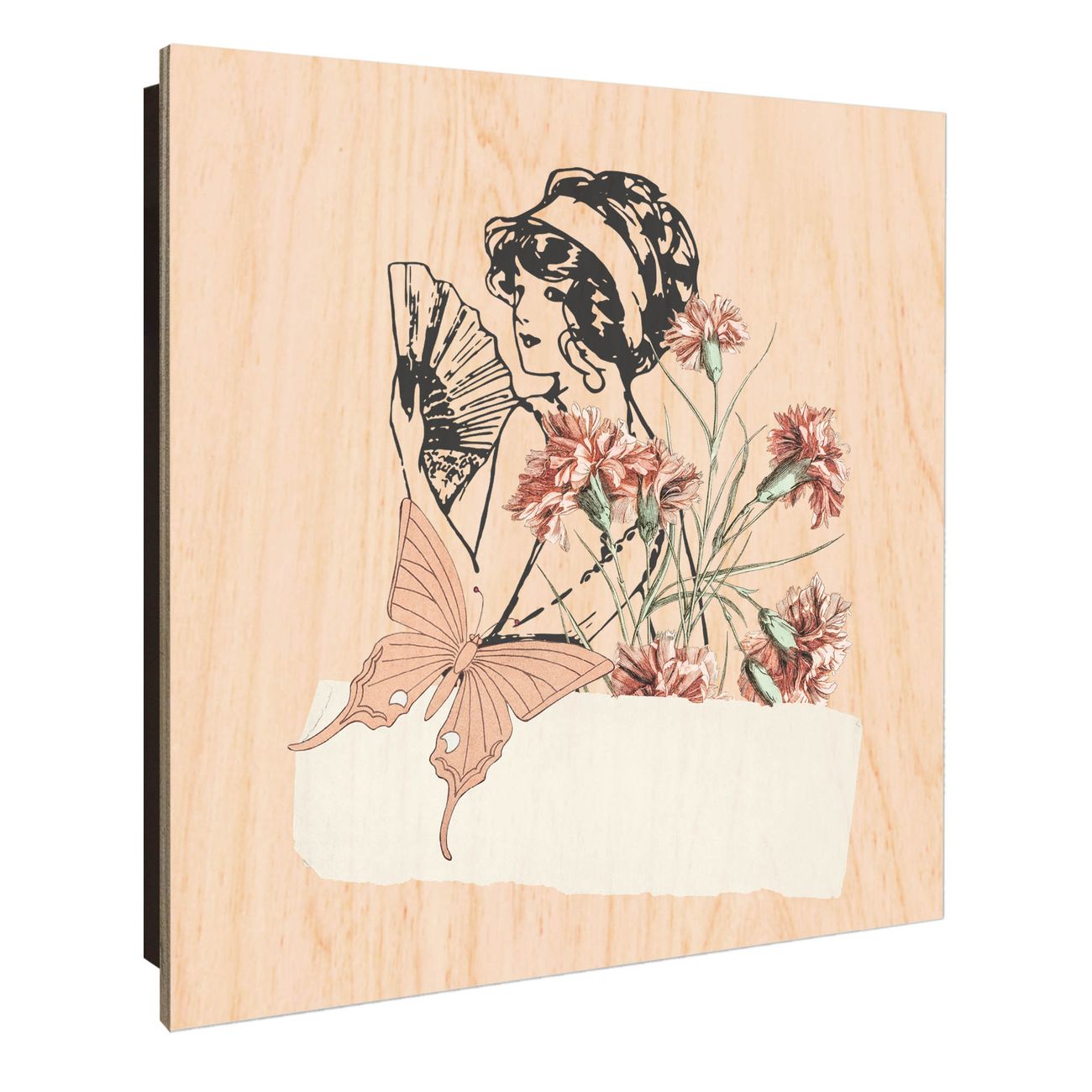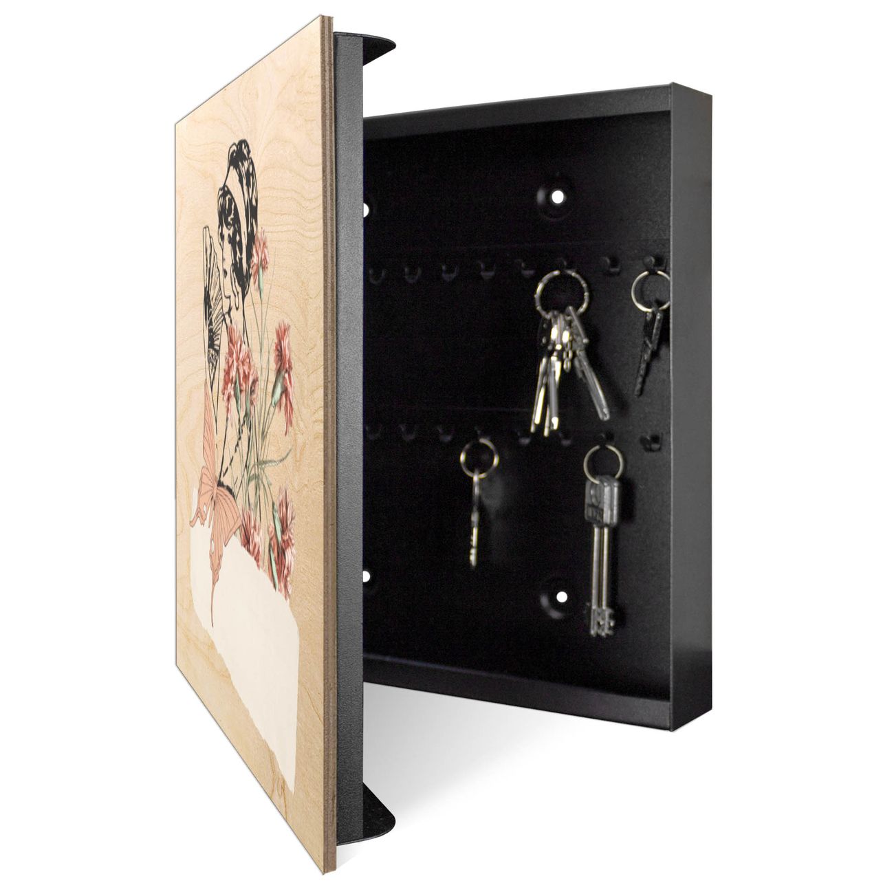 Schlüsselkasten mit Holzfront - Design Schlüsselbox Motiv Vintage Blumenfrau