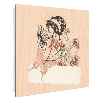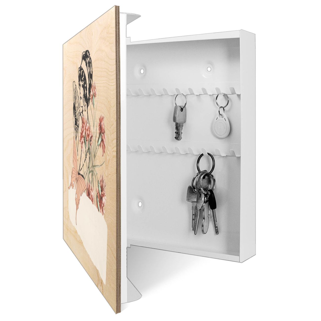 Schlüsselkasten mit Holzfront - Design Schlüsselbox Motiv Vintage Blumenfrau