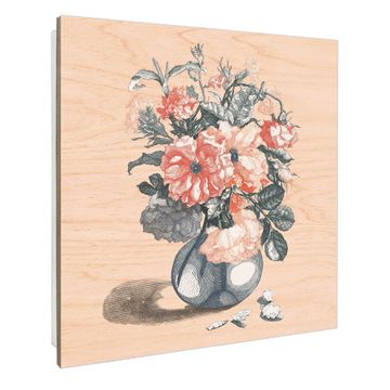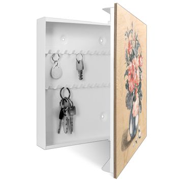 Schlüsselkasten mit Holzfront - Design Schlüsselbox Motiv Vintage Blumenstrauß
