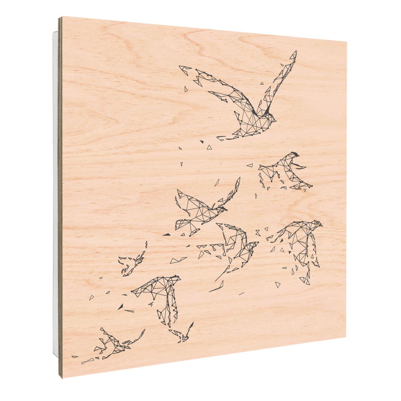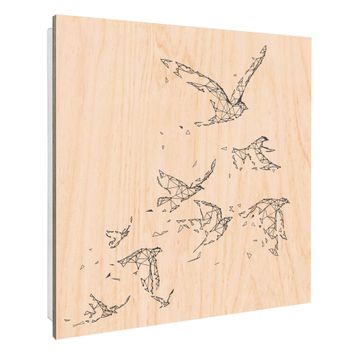 Schlüsselkasten mit Holzfront - Design Schlüsselbox Motiv Vögel abstrakt 2