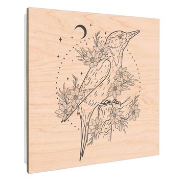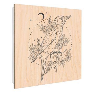Schlüsselkasten mit Holzfront - Design Schlüsselbox Motiv Vogel und Blumen im Mondlicht
