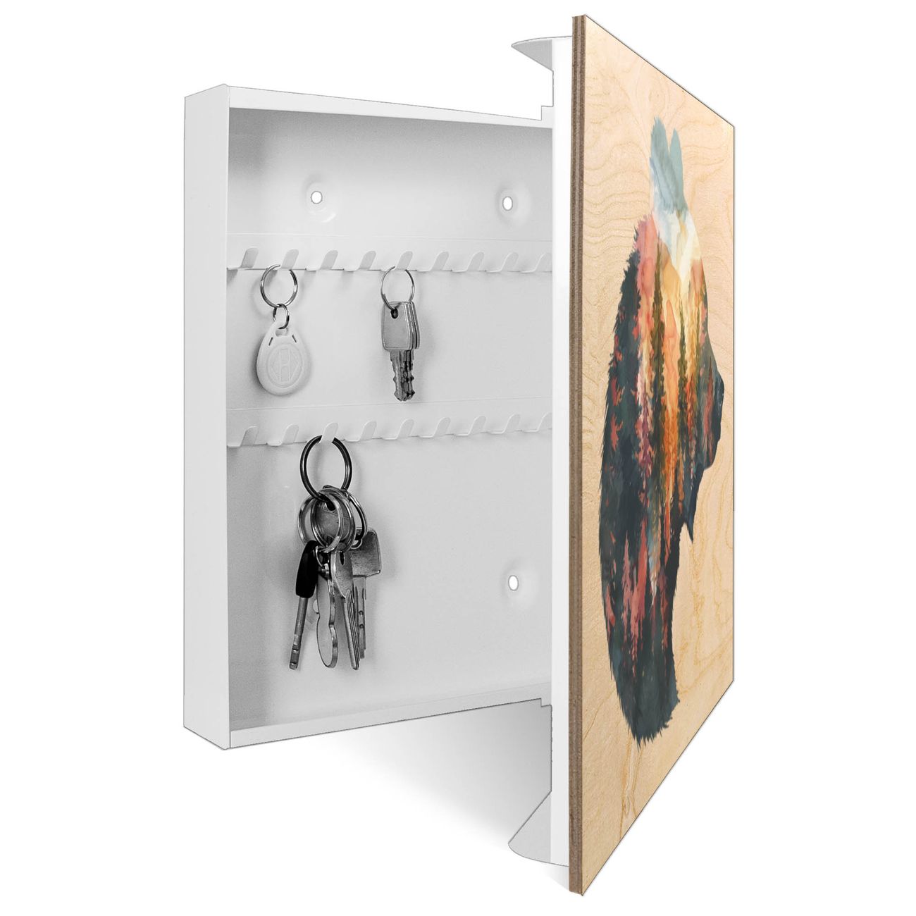 Schlüsselkasten mit Holzfront - Design Schlüsselbox Motiv Wald und Bär