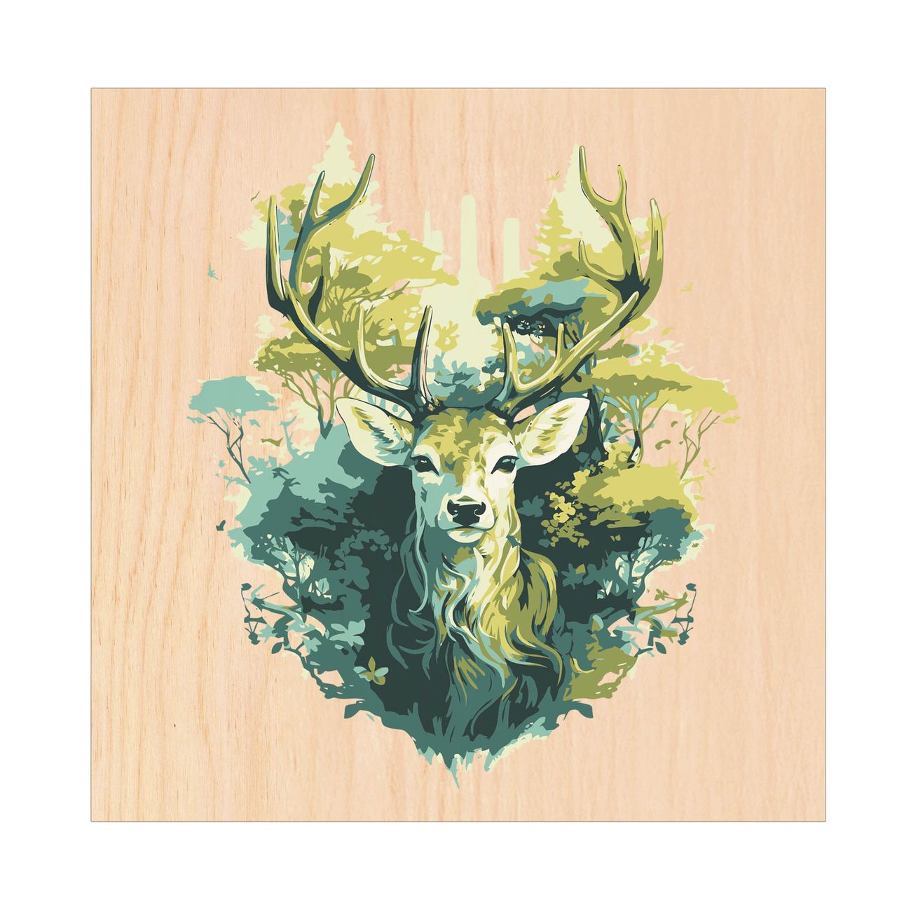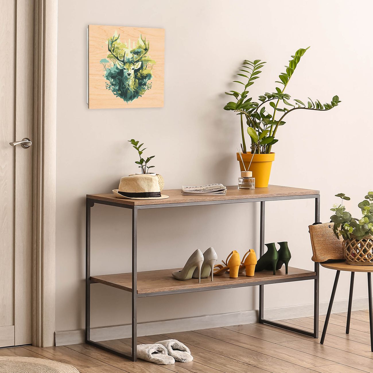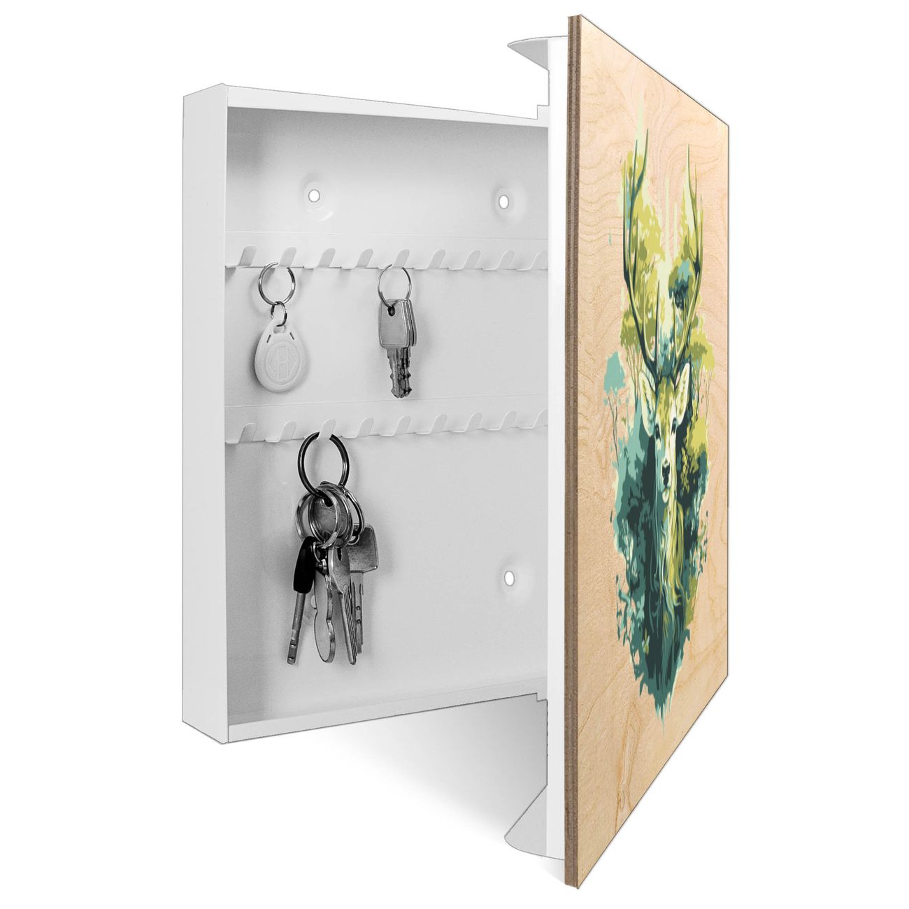 Schlüsselkasten mit Holzfront - Design Schlüsselbox Motiv Waldhirsche
