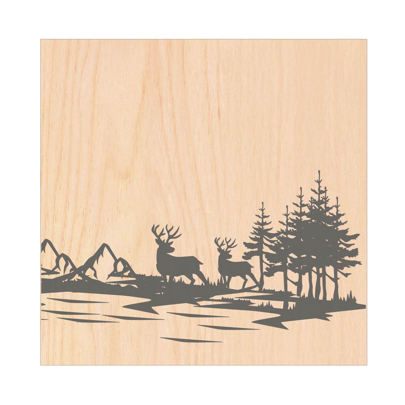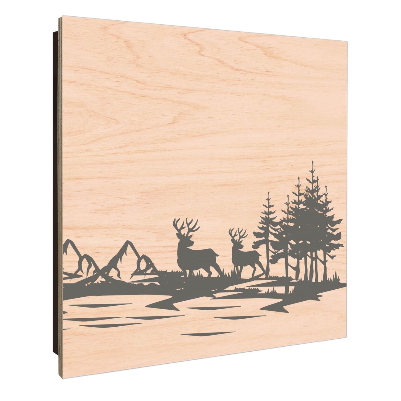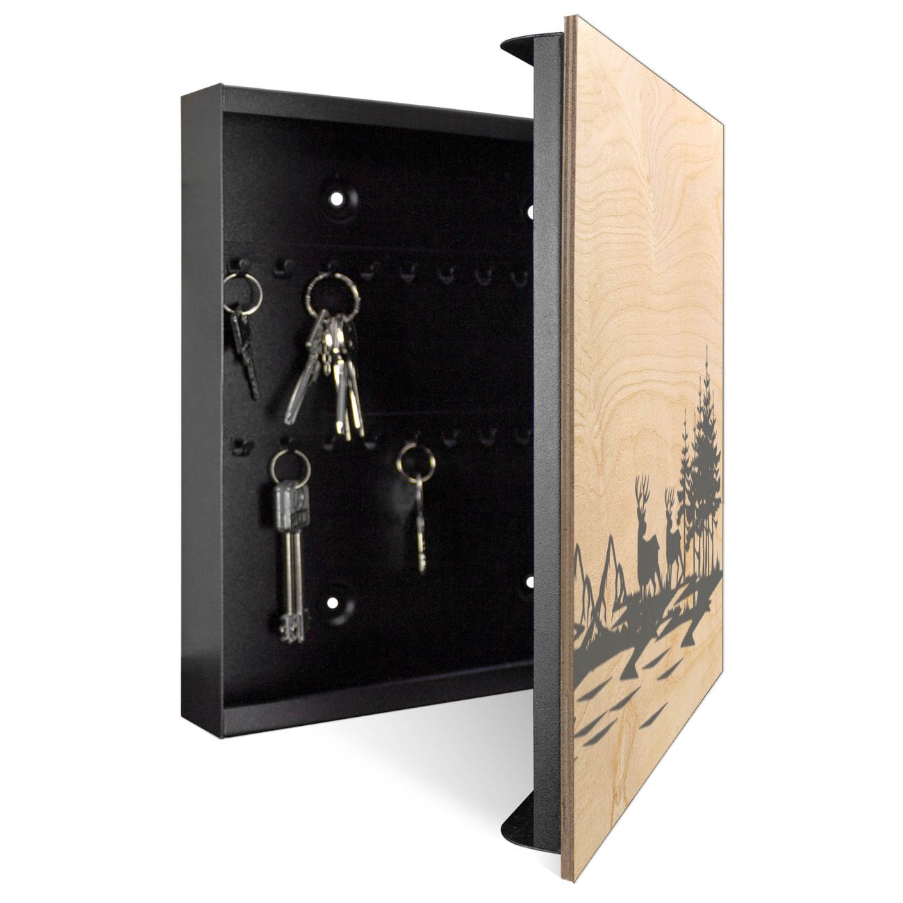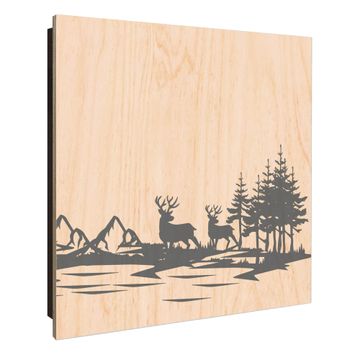 Schlüsselkasten mit Holzfront - Design Schlüsselbox Motiv Waldidylle mit Hirschen