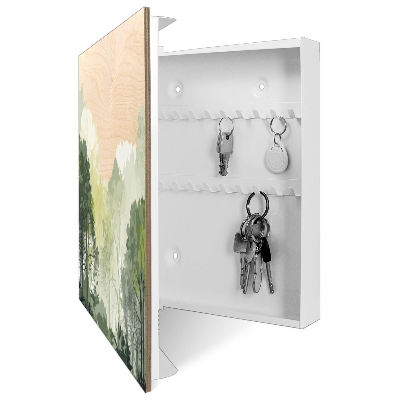 Schlüsselkasten mit Holzfront - Design Schlüsselbox Motiv Waldszene