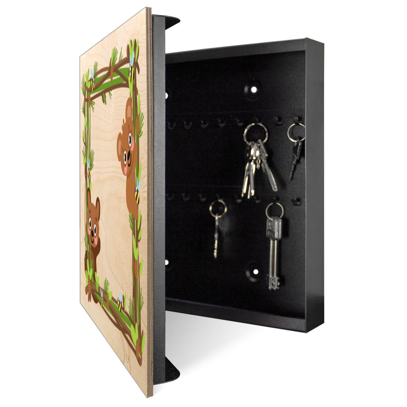 Schlüsselkasten mit Holzfront - Design Schlüsselbox Motiv Waldtier-Rahmen
