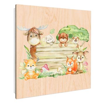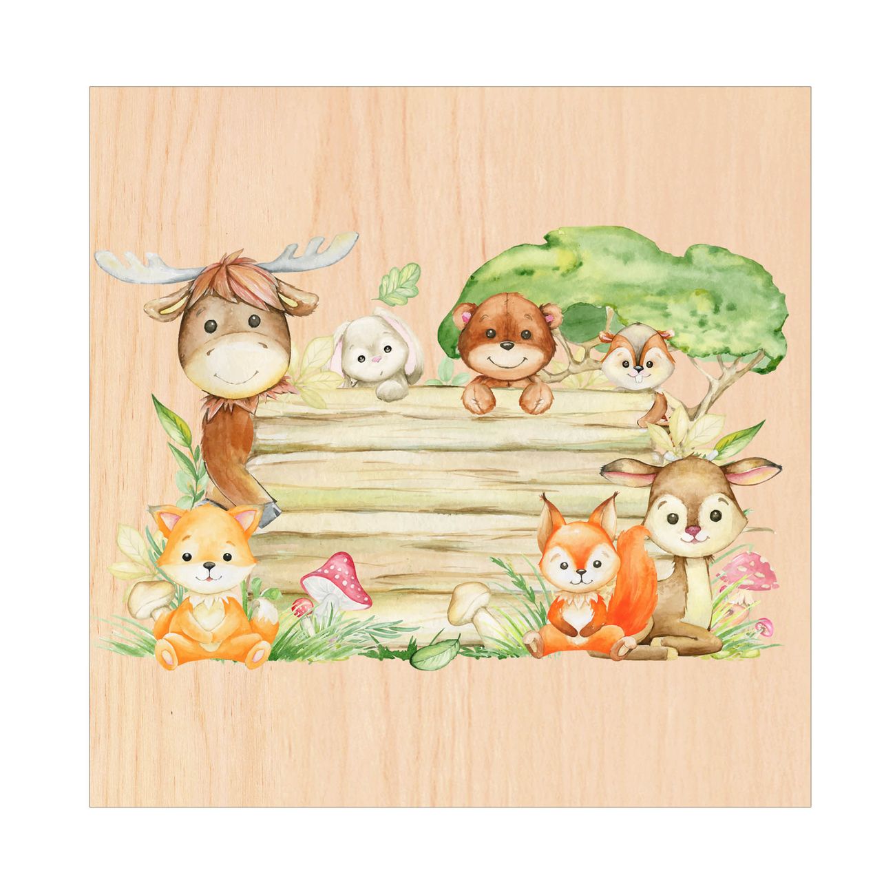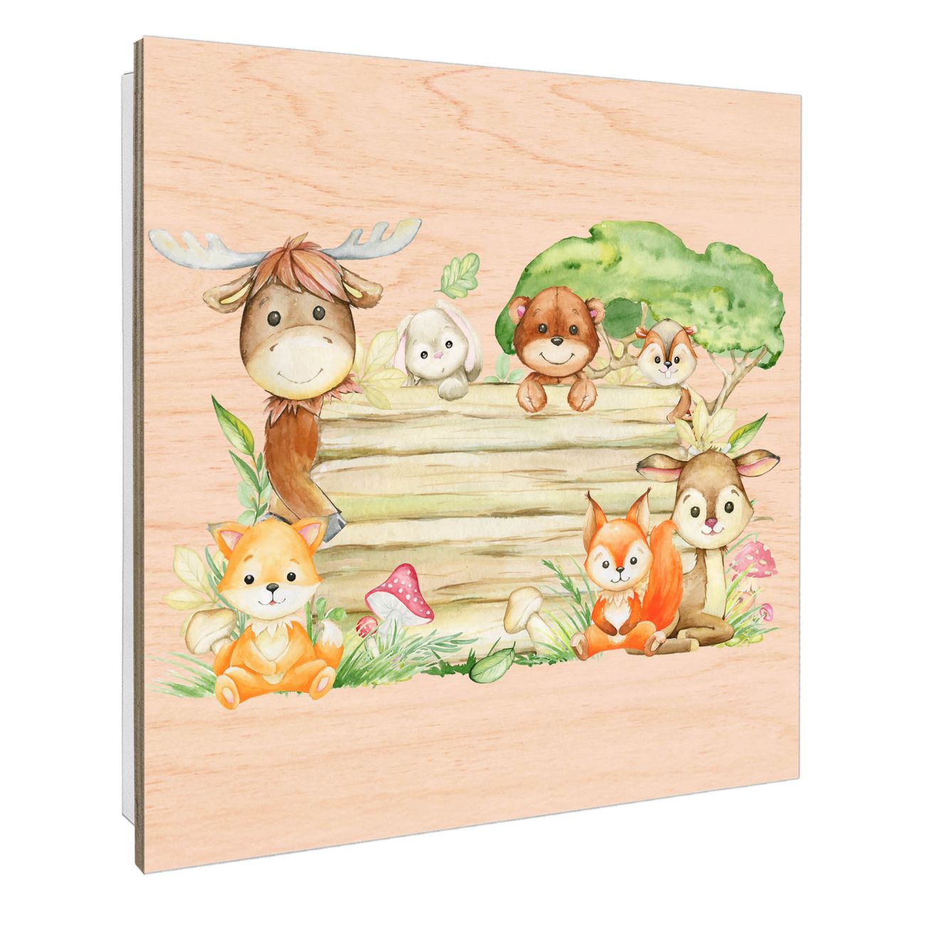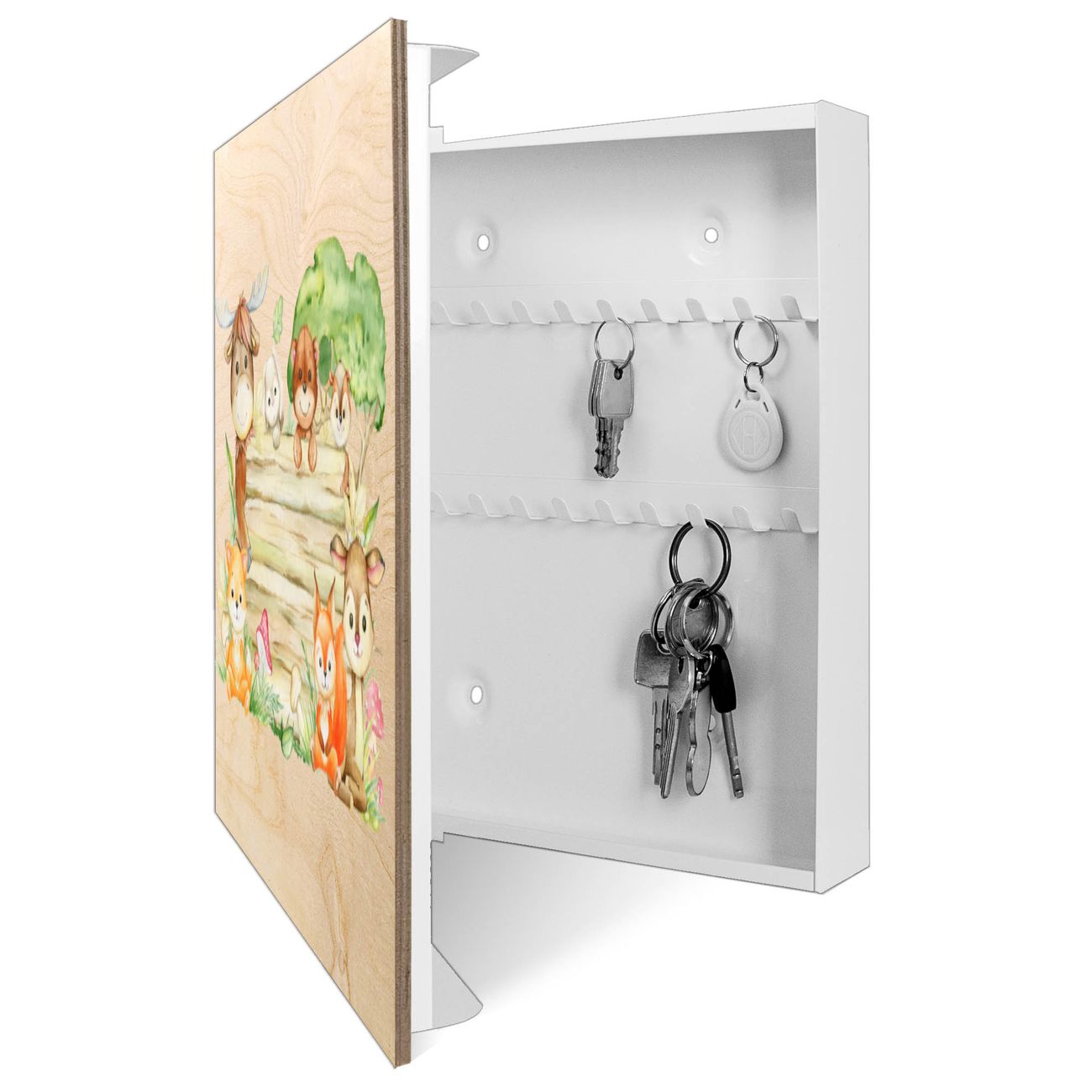 Schlüsselkasten mit Holzfront - Design Schlüsselbox Motiv Waldtiere Abenteuer