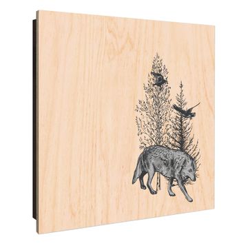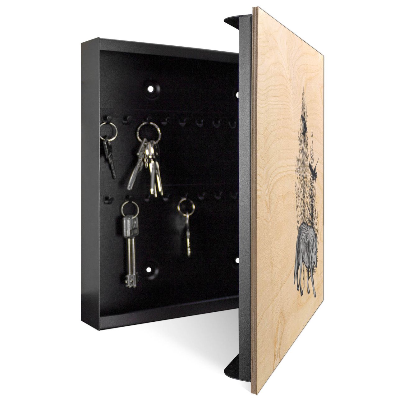 Schlüsselkasten mit Holzfront - Design Schlüsselbox Motiv Waldtiere in Schwarz-Weiß