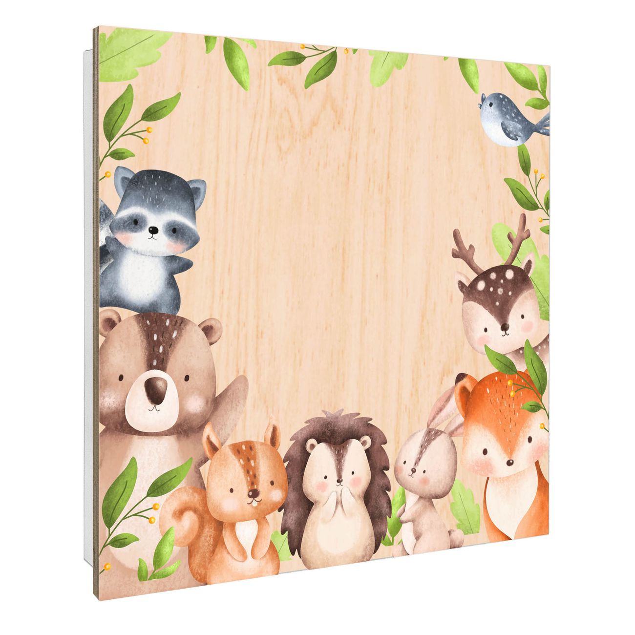 Schlüsselkasten mit Holzfront - Design Schlüsselbox Motiv Waldtierfreunde 2
