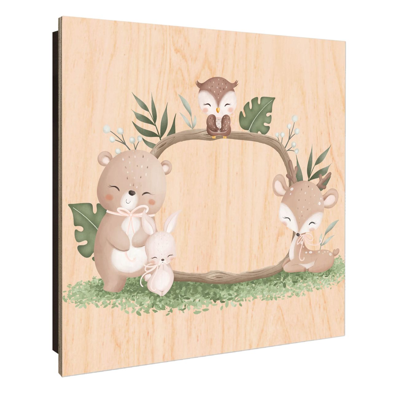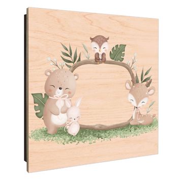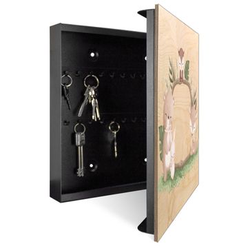 Schlüsselkasten mit Holzfront - Design Schlüsselbox Motiv Waldtierfreunde