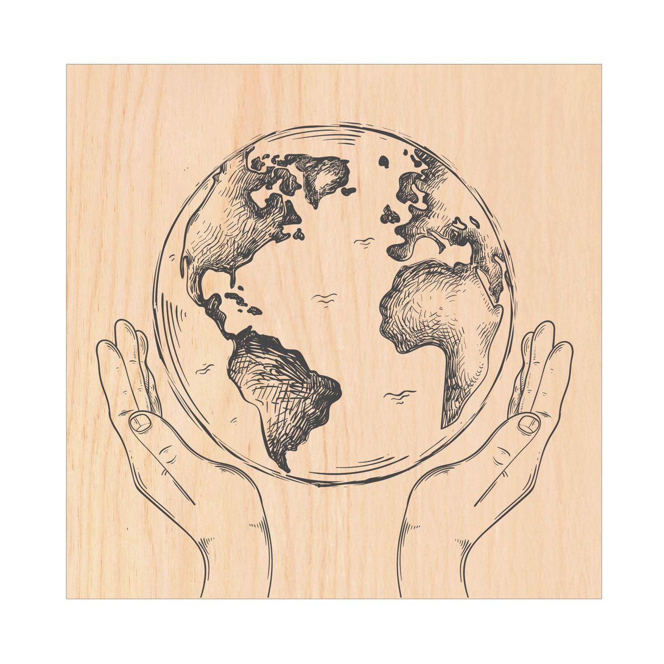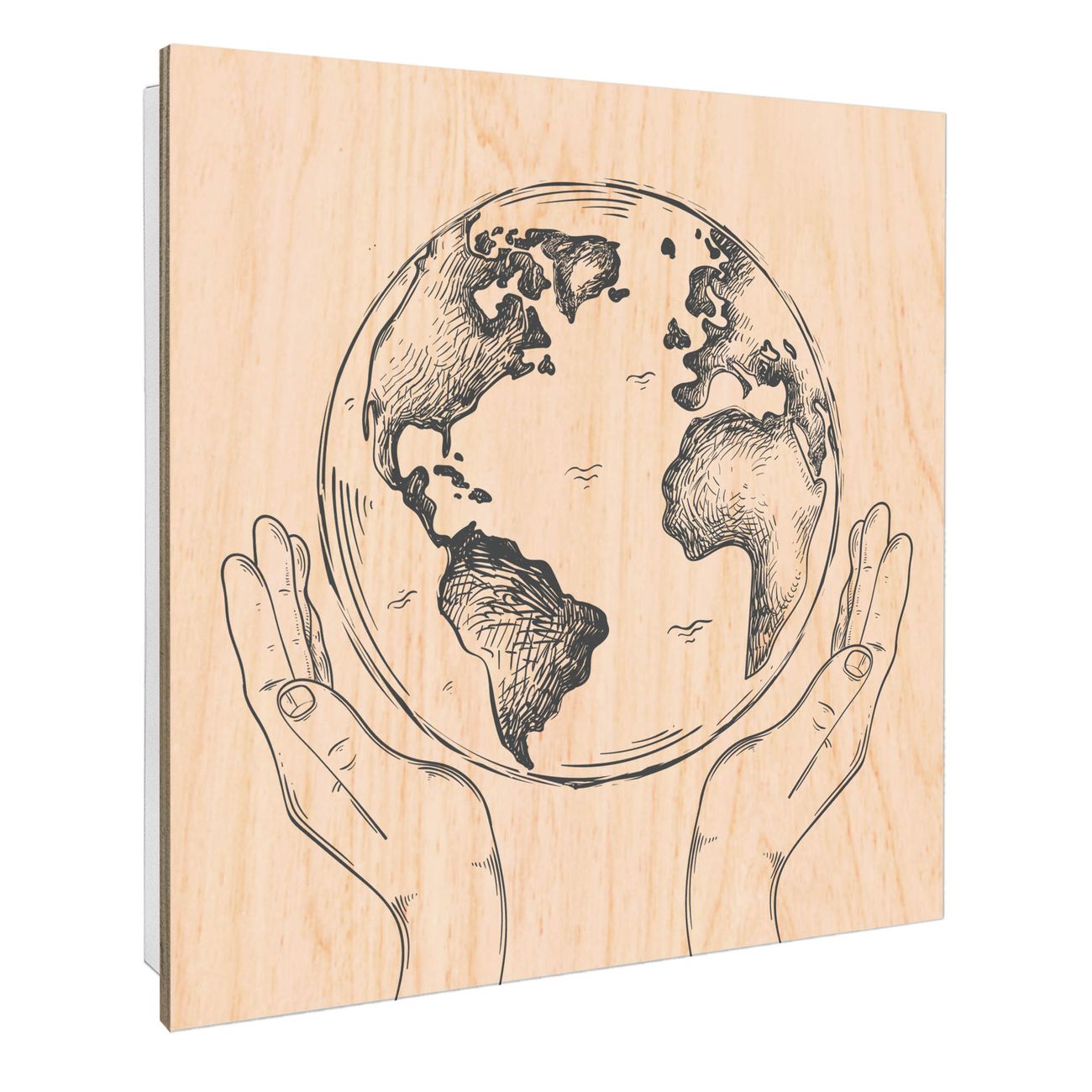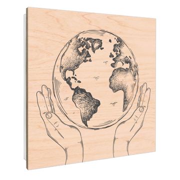 Schlüsselkasten mit Holzfront - Design Schlüsselbox Motiv Welt in den Händen
