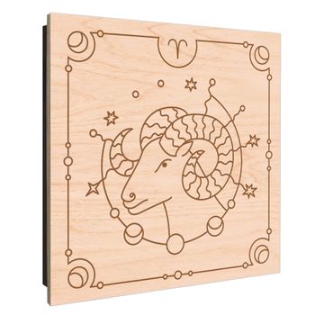 Schlüsselkasten mit Holzfront - Design Schlüsselbox Motiv Widder Sternzeichen Illustration