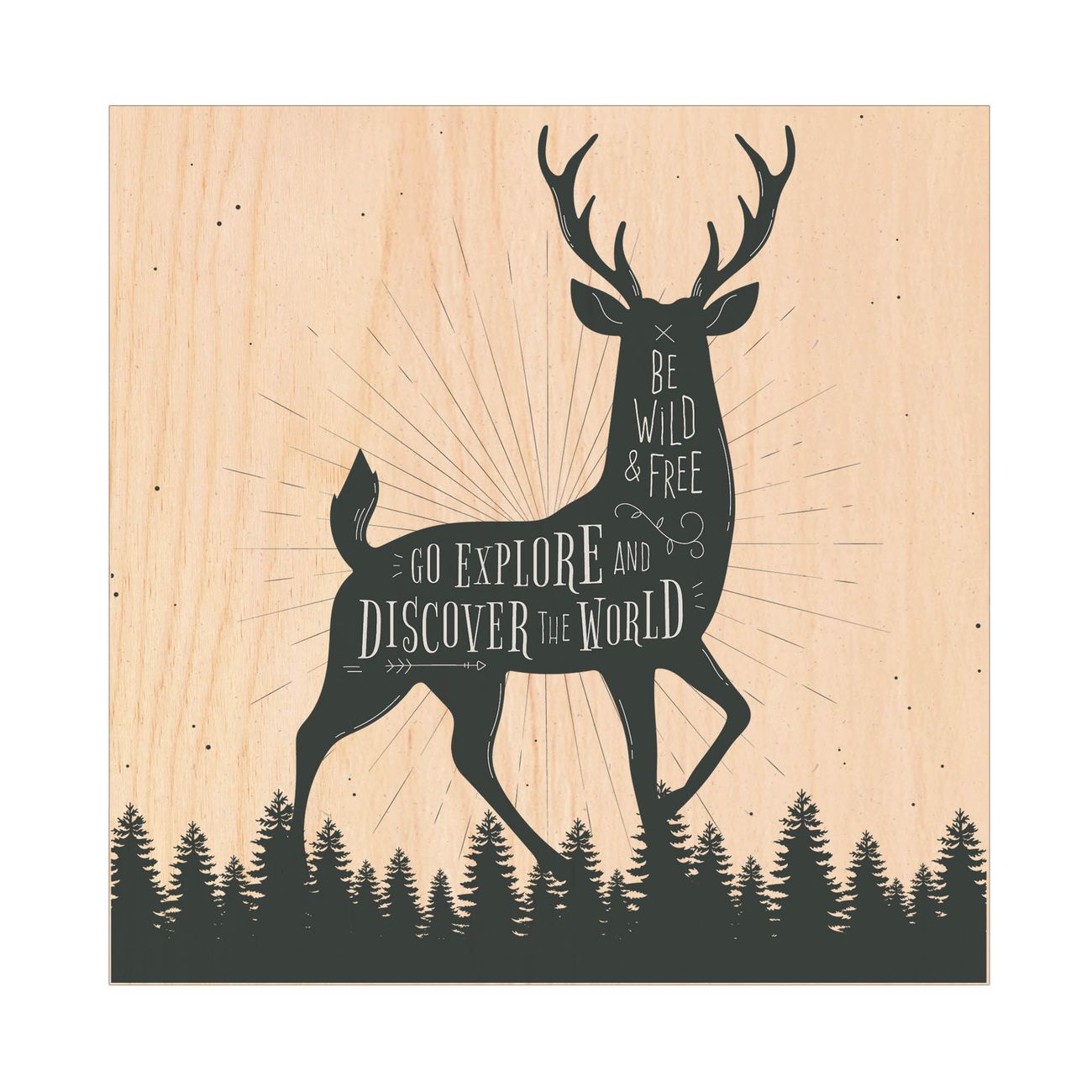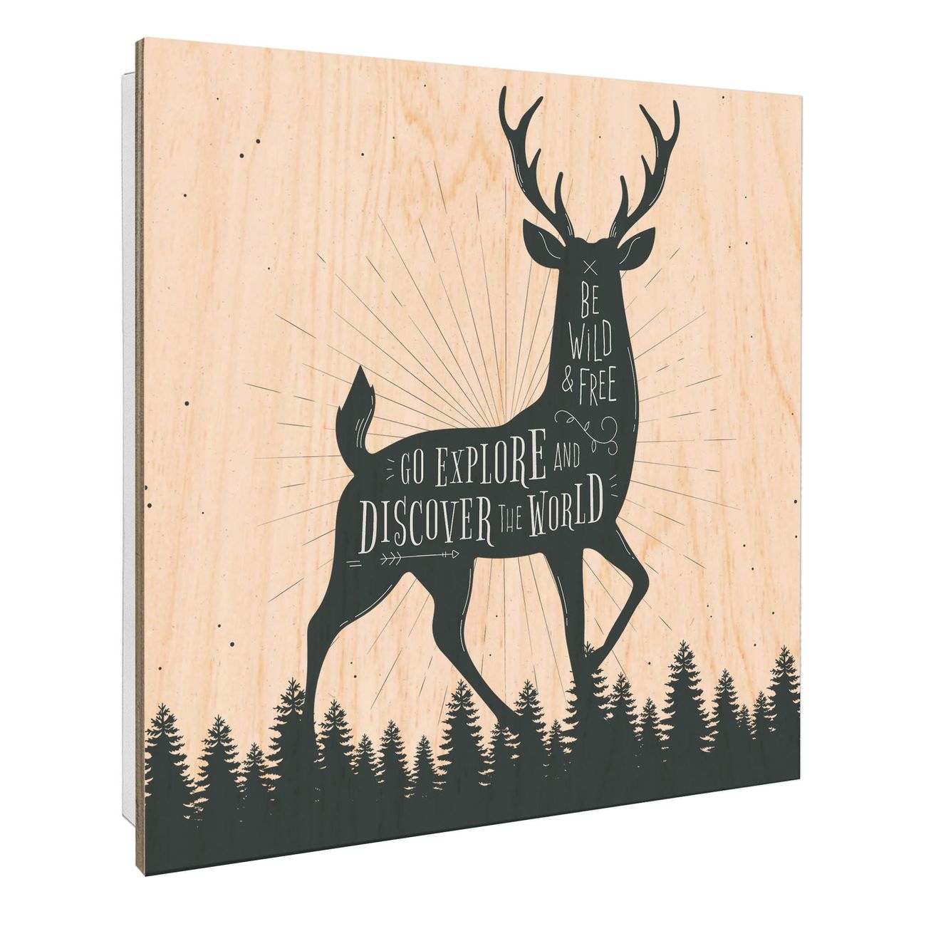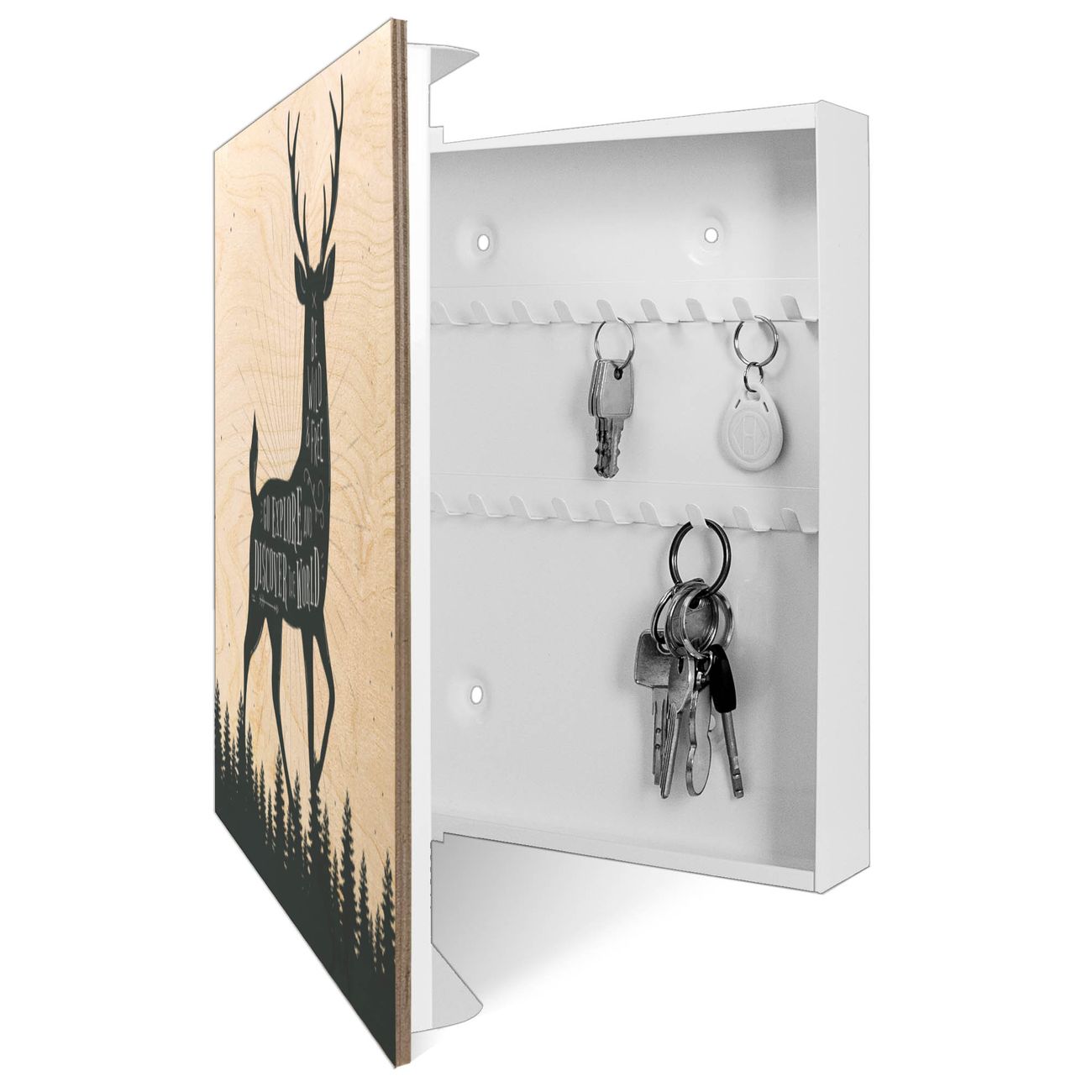 Schlüsselkasten mit Holzfront - Design Schlüsselbox Motiv Wilder Hirsch