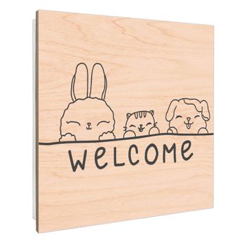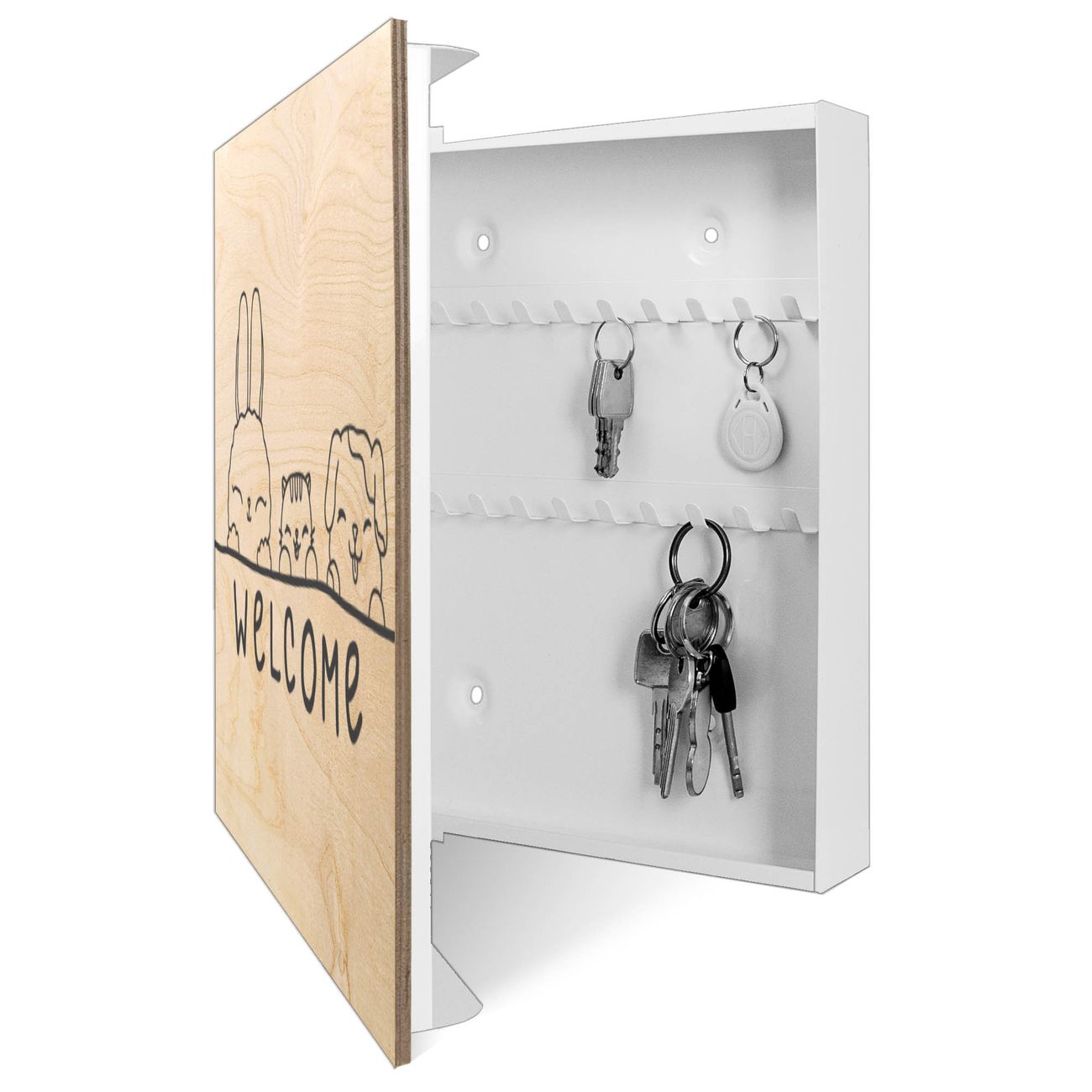 Schlüsselkasten mit Holzfront - Design Schlüsselbox Motiv Willkommensfreunde