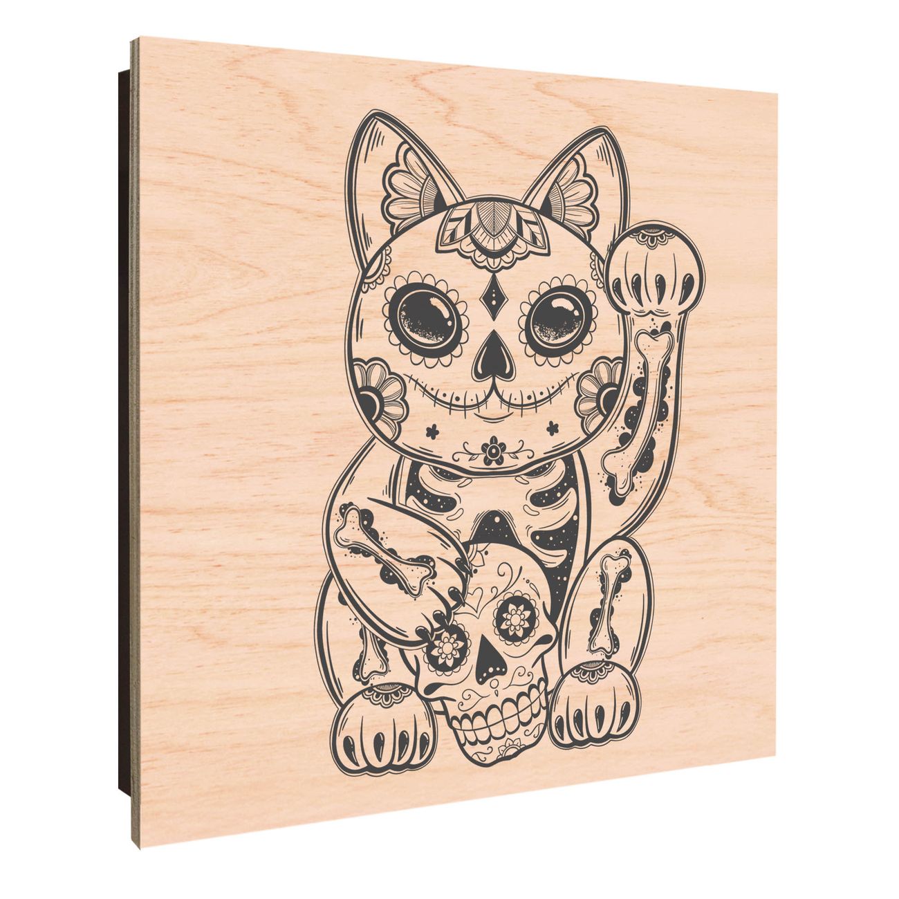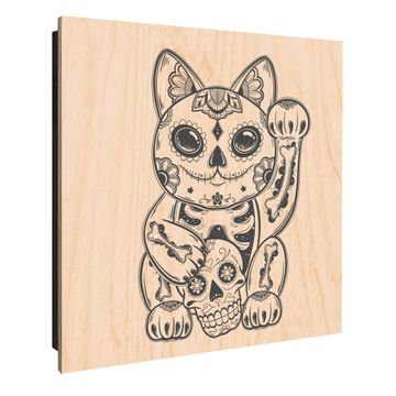 Schlüsselkasten mit Holzfront - Design Schlüsselbox Motiv Winkekatze 2