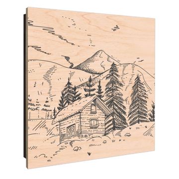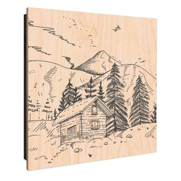 Schlüsselkasten mit Holzfront - Design Schlüsselbox Motiv Winterliche Berghüttenidylle
