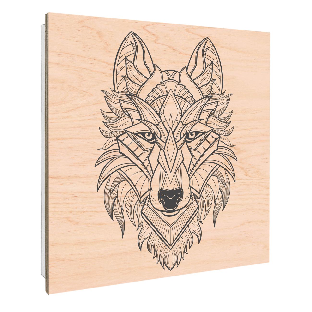 Schlüsselkasten mit Holzfront - Design Schlüsselbox Motiv Wolf 2
