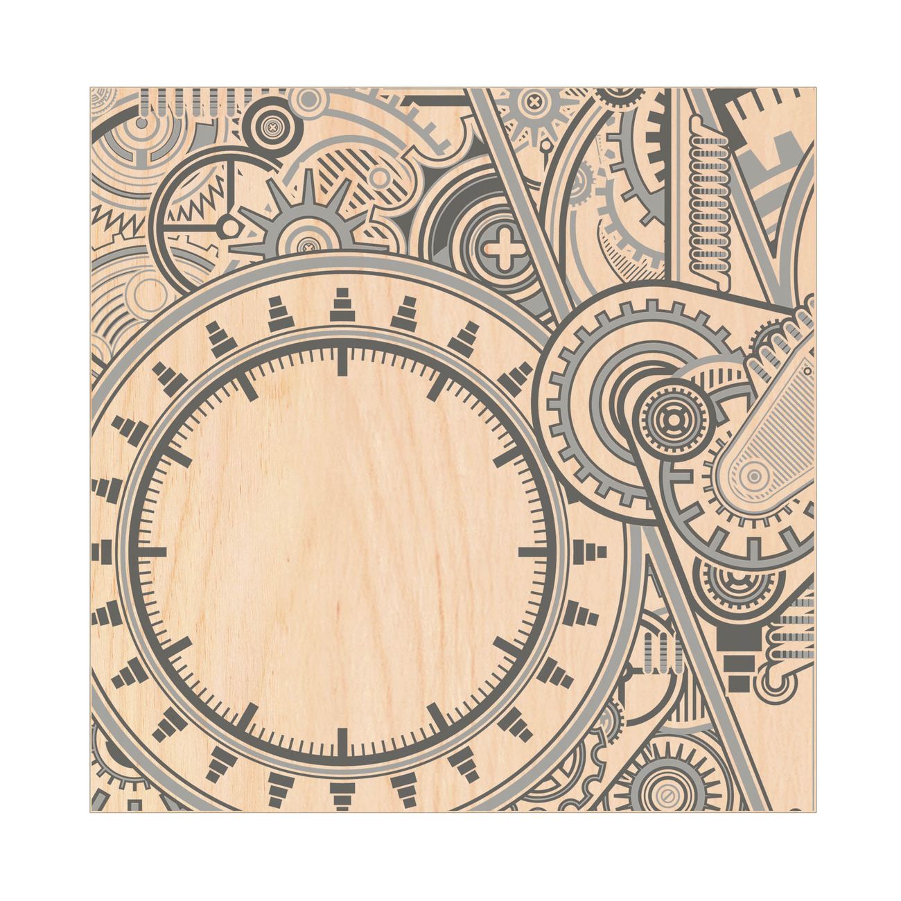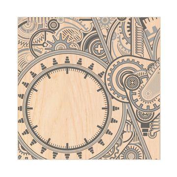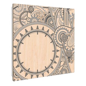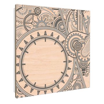 Schlüsselkasten mit Holzfront - Design Schlüsselbox Motiv Zahnradgeometrie