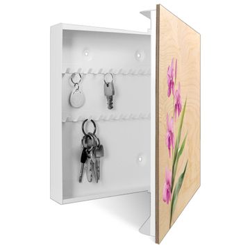 Schlüsselkasten mit Holzfront - Design Schlüsselbox Motiv Zarte Orchidee