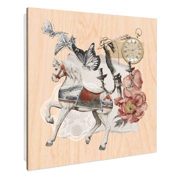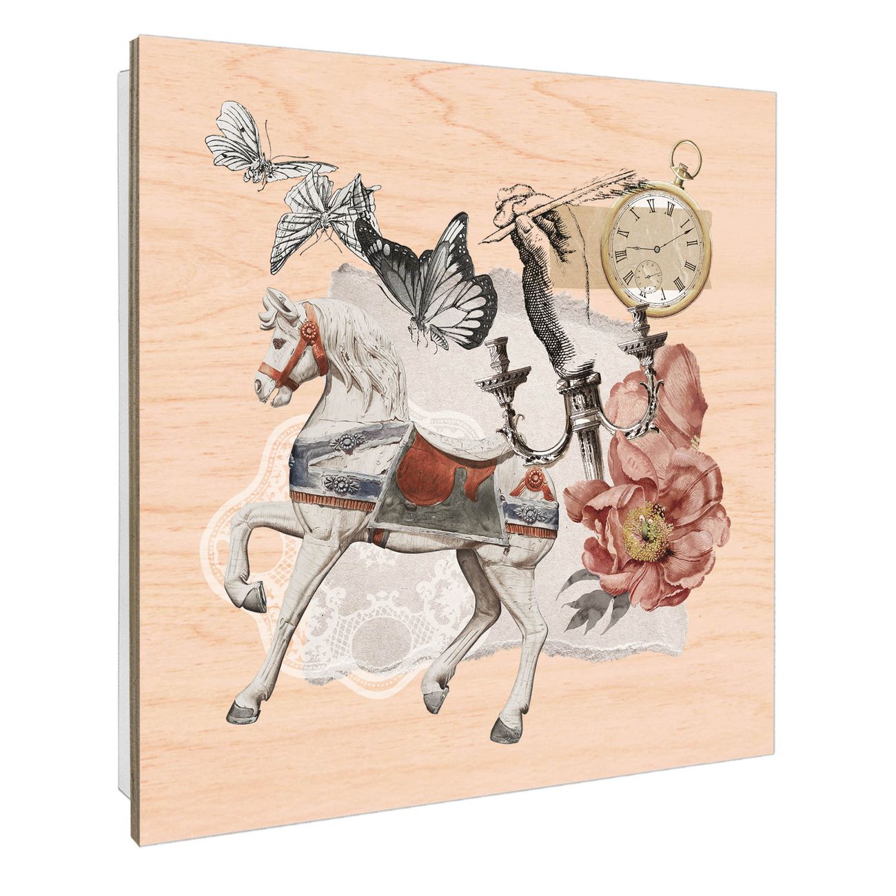 Schlüsselkasten mit Holzfront - Design Schlüsselbox Motiv Zeitreise-Kollage