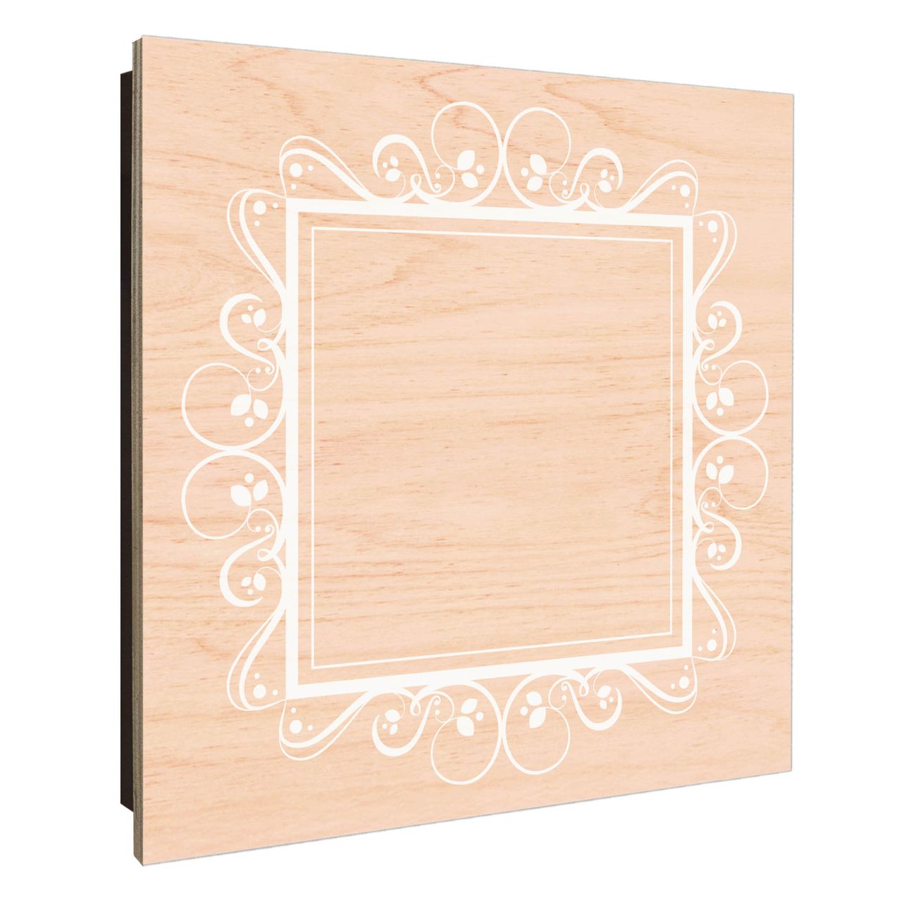 Schlüsselkasten mit Holzfront - Design Schlüsselbox Motiv Zierrahmen Grau-Weiß