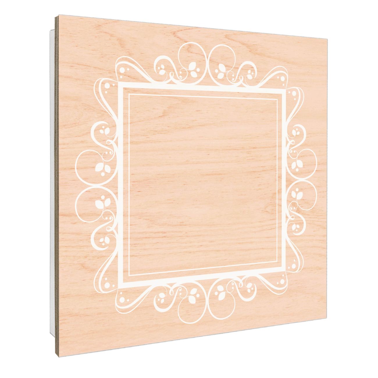 Schlüsselkasten mit Holzfront - Design Schlüsselbox Motiv Zierrahmen Grau-Weiß