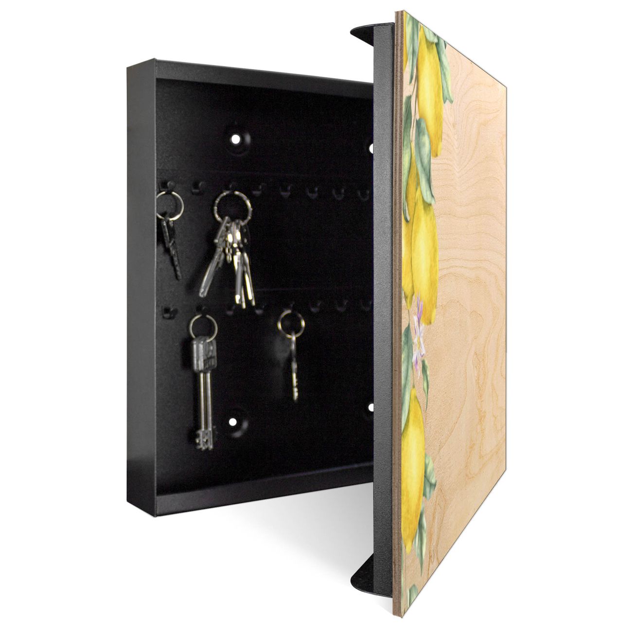 Schlüsselkasten mit Holzfront - Design Schlüsselbox Motiv Zitronenzweig Aquarell