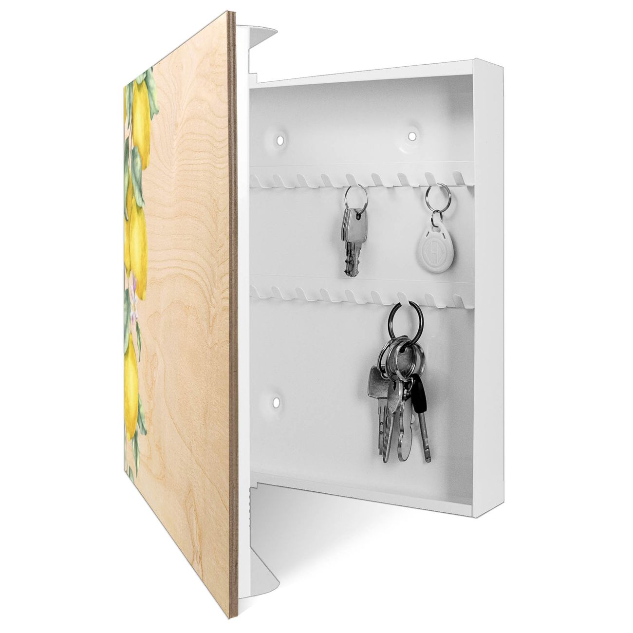 Schlüsselkasten mit Holzfront - Design Schlüsselbox Motiv Zitronenzweig Aquarell