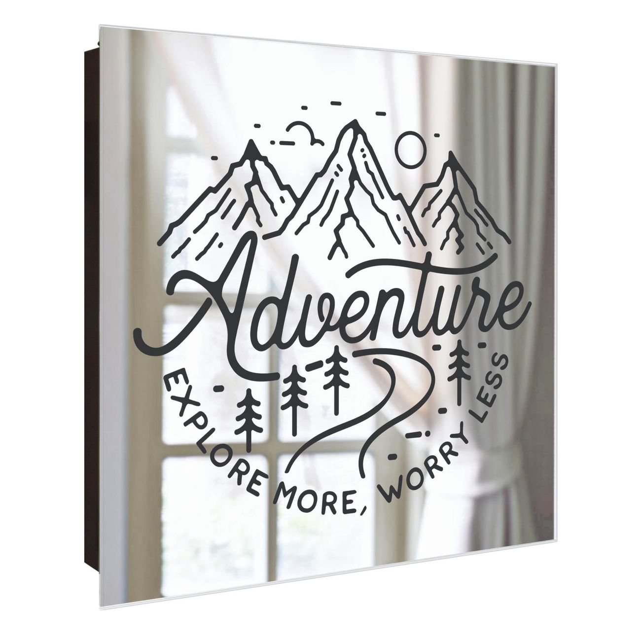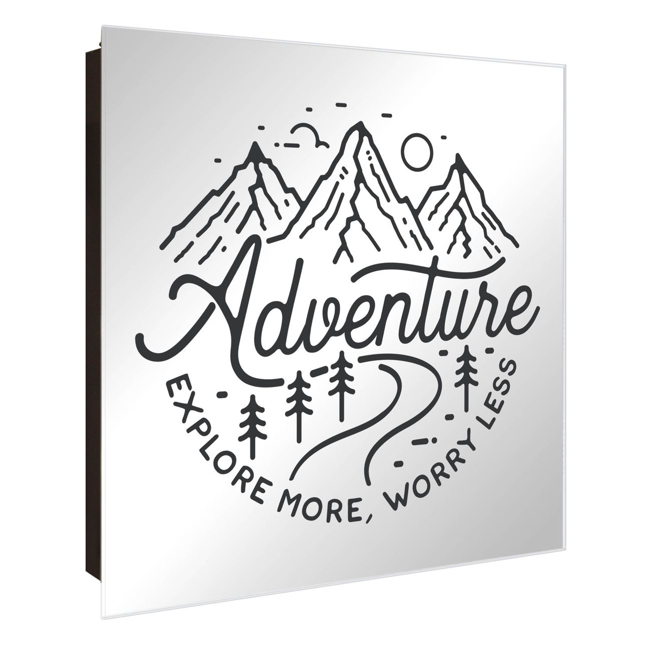Spiegel Schlüsselkasten - Design Schlüsselbox Motiv Abenteuerliche Bergskizze mit Spruch