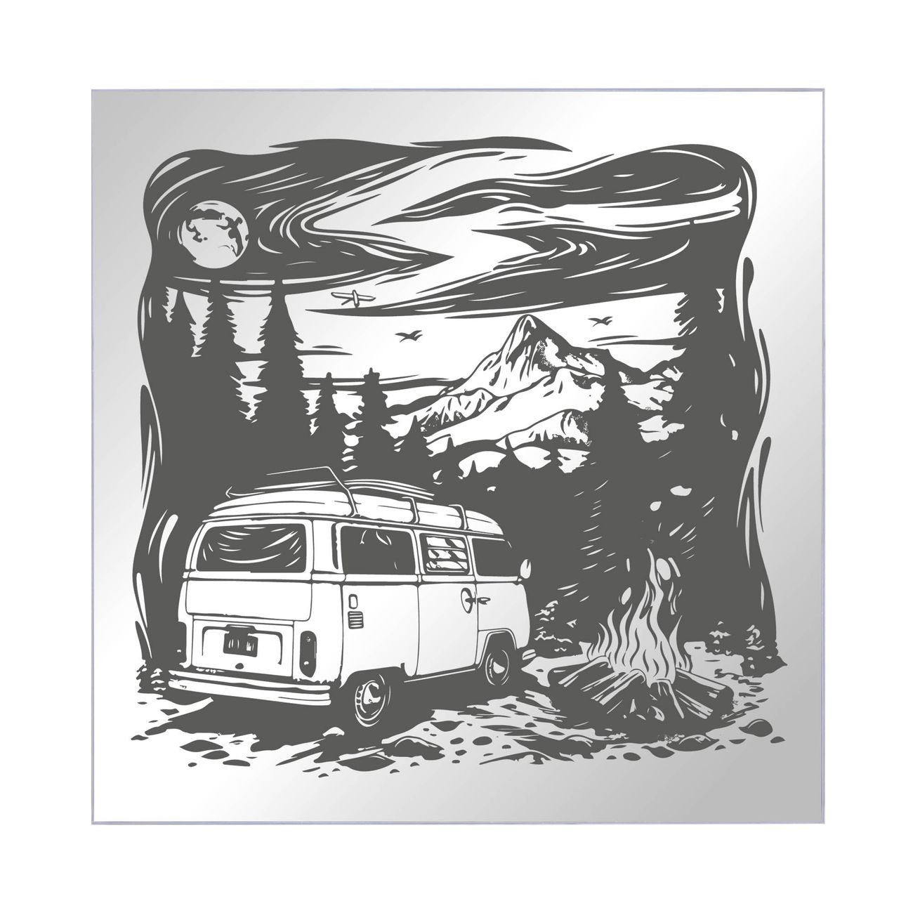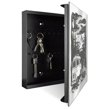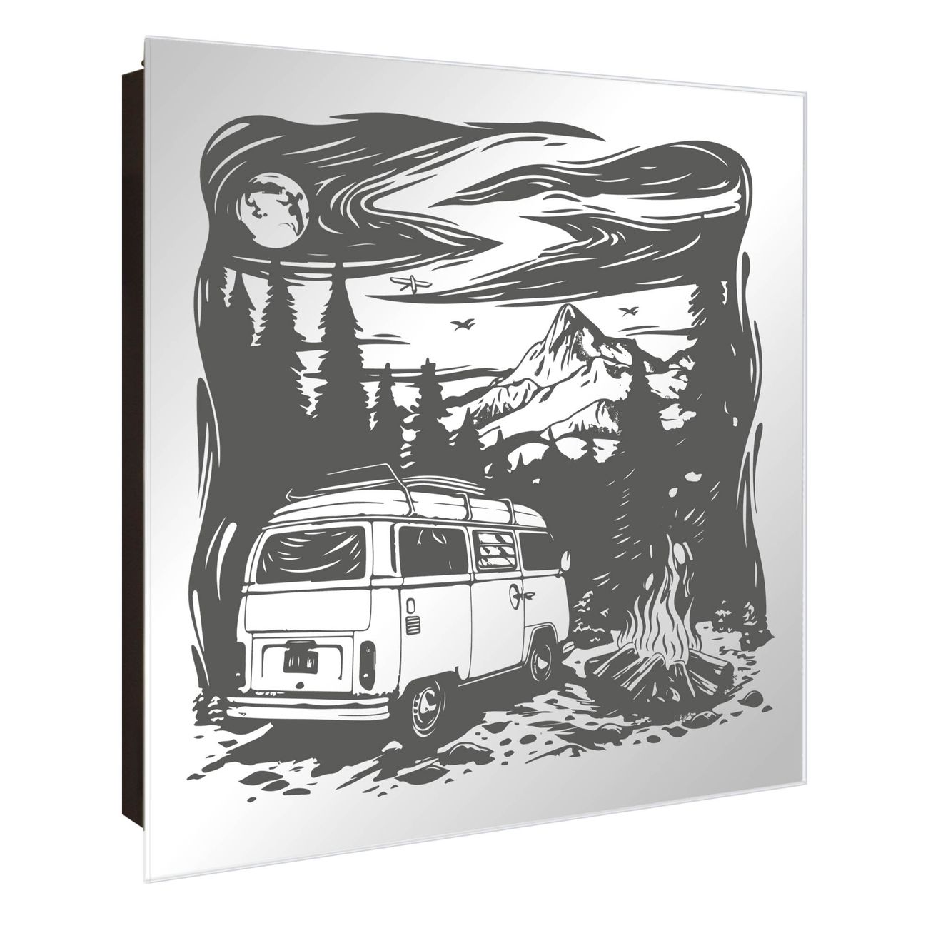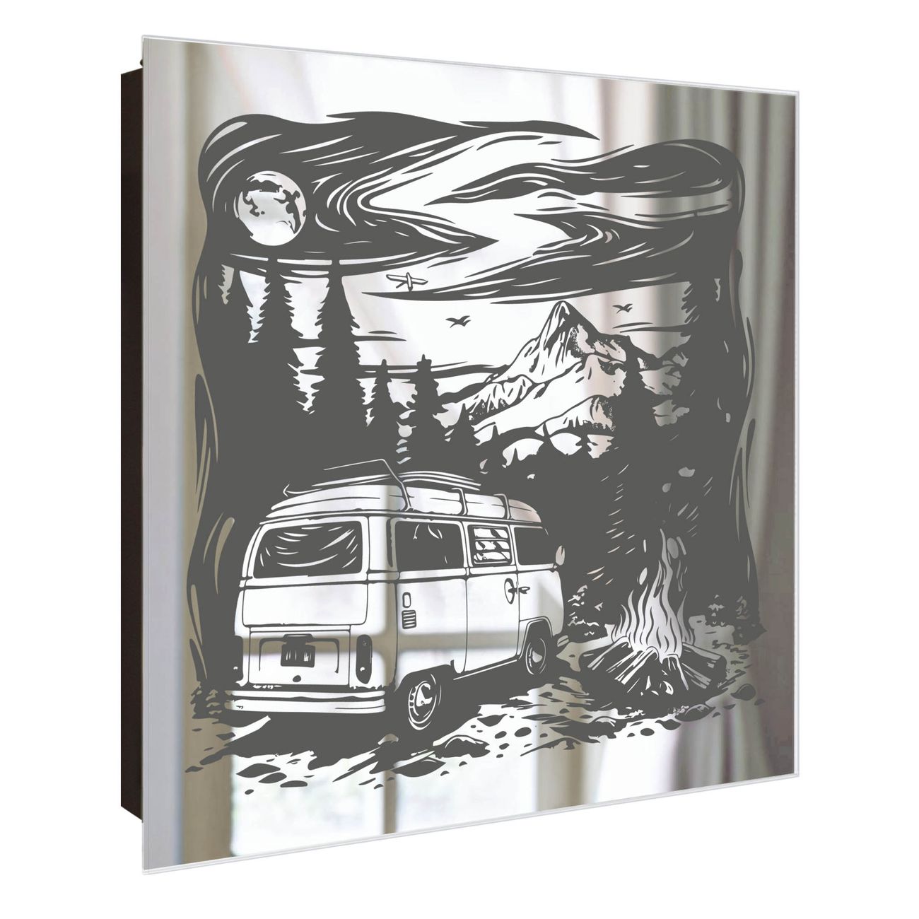 Spiegel Schlüsselkasten - Design Schlüsselbox Motiv Abenteuerliche Campingszene