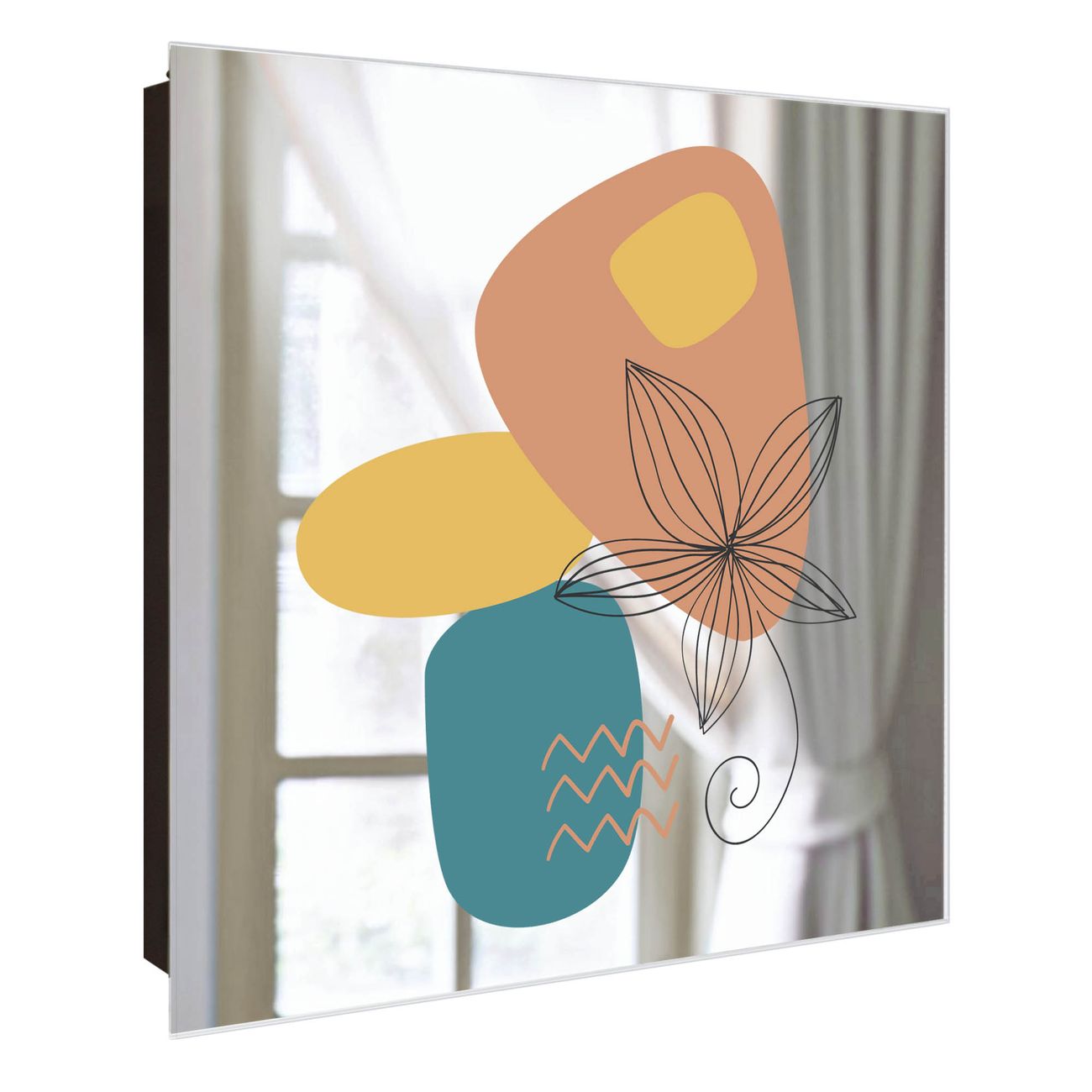 Spiegel Schlüsselkasten - Design Schlüsselbox Motiv Abstrakte Blumenkontur