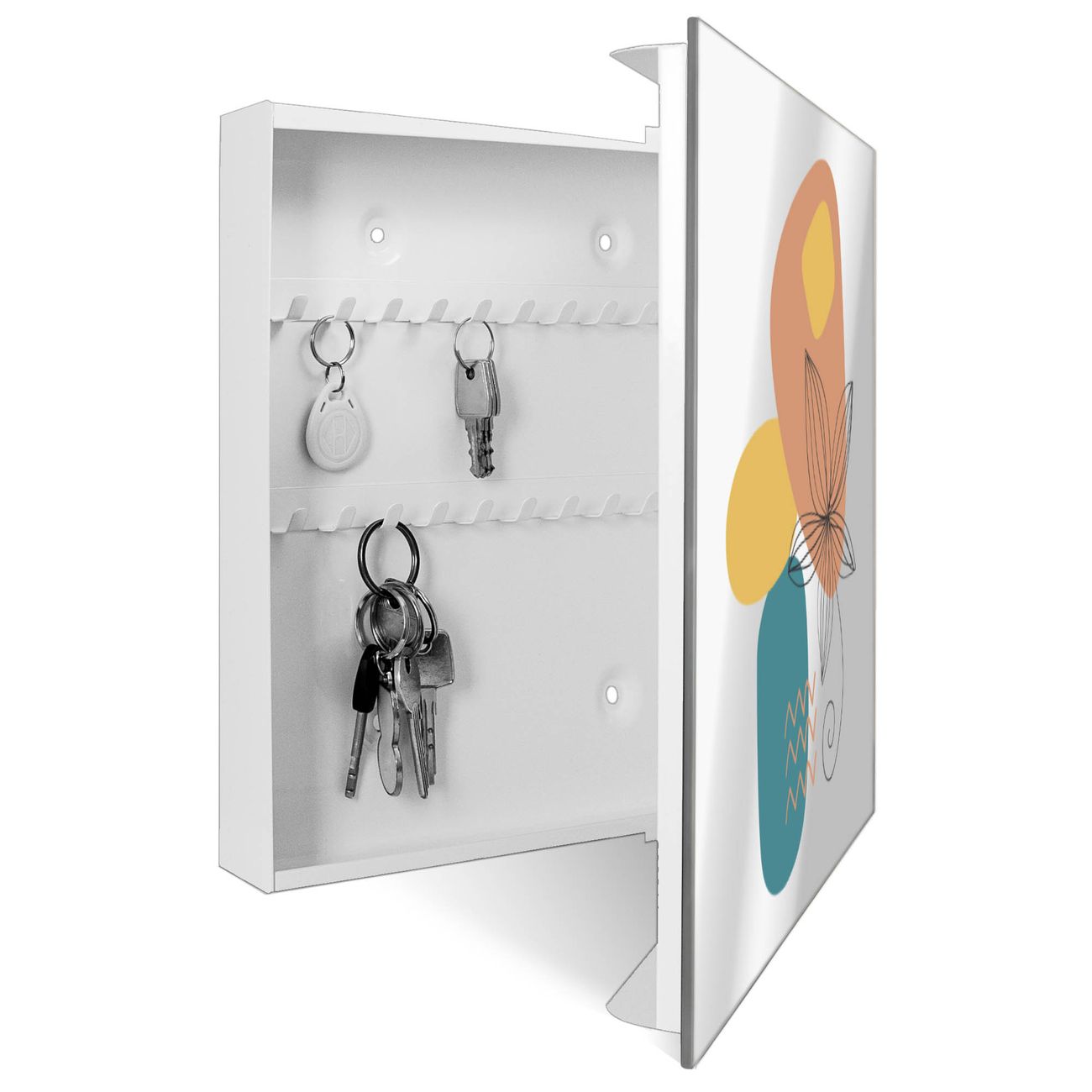 Spiegel Schlüsselkasten - Design Schlüsselbox Motiv Abstrakte Blumenkontur