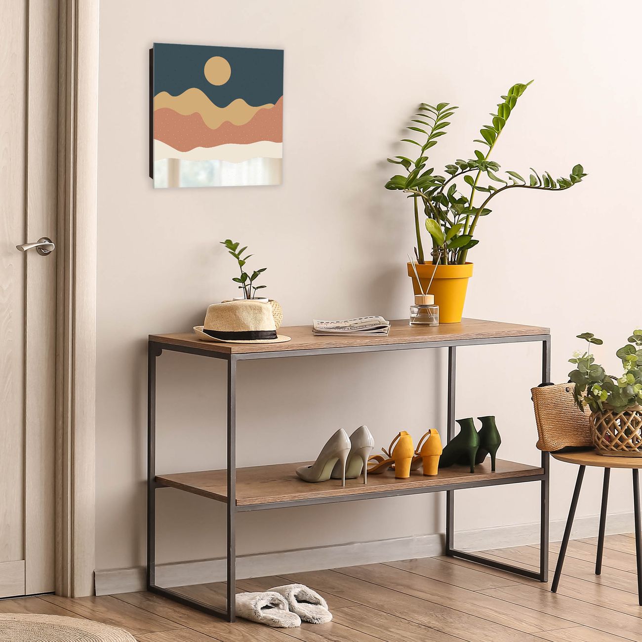 Bringe Ordnung und Stil in deinen Eingangsbereich mit dem banjado Schlüsselkasten mit Spiegel. Die elegante Spiegelfront kombiniert Funktionalität mit modernem Design und macht die Schlüsselaufbewahrung zu einem dekorativen Highlight. ✅ Spiegel Schlüsselaufbewahrung mit Motiv Motiv Abstrakte Wüstenlandschaft Der Design-Schlüsselkasten Motiv Motiv Abstrakte Wüstenlandschaft bietet Platz für bis zu 50 Schlüssel, die auf 5 stabilen Reihen mit je 10 Haken übersichtlich verstaut werden. Mit seinen kompakten Maßen von 30 x 30 x 5 cm passt die Schlüsselbox perfekt auch in kleinere Räume. Der schwarz lackierte Stahlkorpus mit rechts angeschlagenem Türscharnier harmoniert mit der Spiegelfront und fügt sich nahtlos in jedes Wohnambiente ein. Ob als Schlüsselorganizer für Zuhause oder als praktische Lösung für Büros, Praxen und Gewerbe, der banjado Schlüsselkasten sorgt für Ordnung und Übersicht. Die Spiegelfront verleiht dem Eingangsbereich zusätzliche Funktionalität und lässt Räume optisch größer wirken. Die Schlüsselbox Motiv Motiv Abstrakte Wüstenlandschaft zur Wandmontage wird inklusive Befestigungsmaterial geliefert und ist schnell angebracht. So hast du deine Schlüssel jederzeit griffbereit und zugleich stilvoll verstaut. Mit diesem banjado Schlüsselkasten Motiv Motiv Abstrakte Wüstenlandschaft kombinierst du praktische Aufbewahrung mit stilvollem Wohndesign. Ob privat oder geschäftlich, die Schlüsselbox sorgt für mehr Ordnung, Übersicht und ein wohnliches Ambiente.Vorteile im Überblick