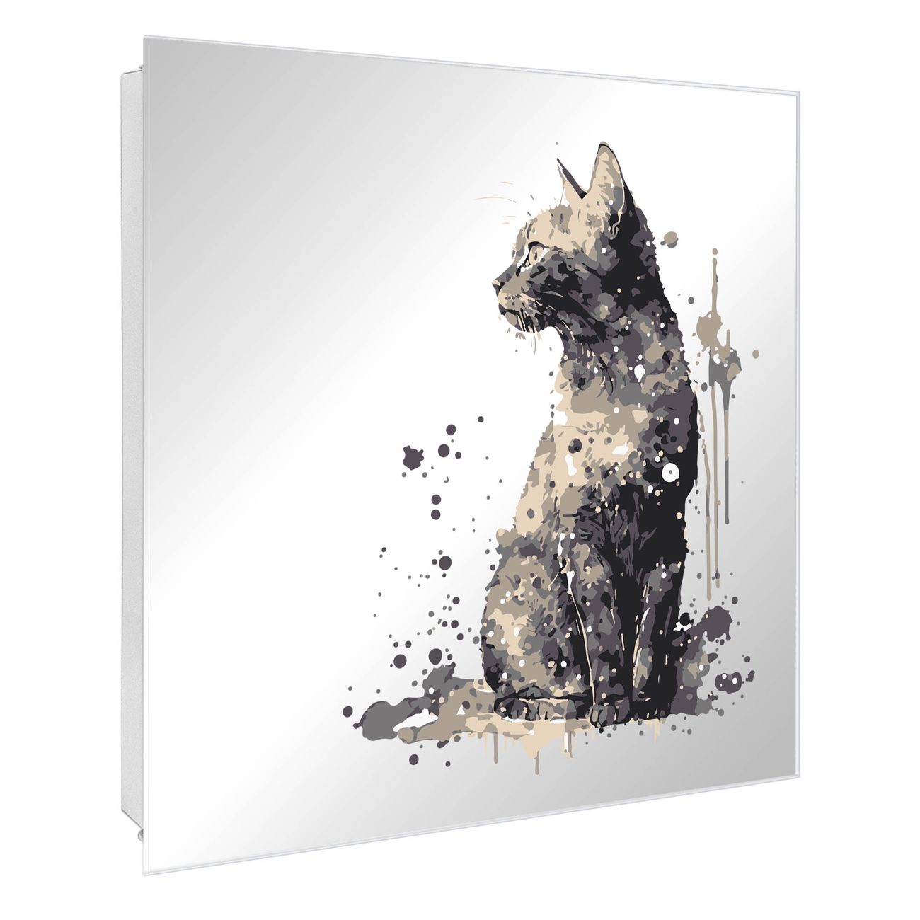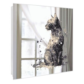 Spiegel Schlüsselkasten - Design Schlüsselbox Motiv Aquarellkatze 2