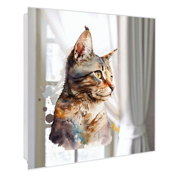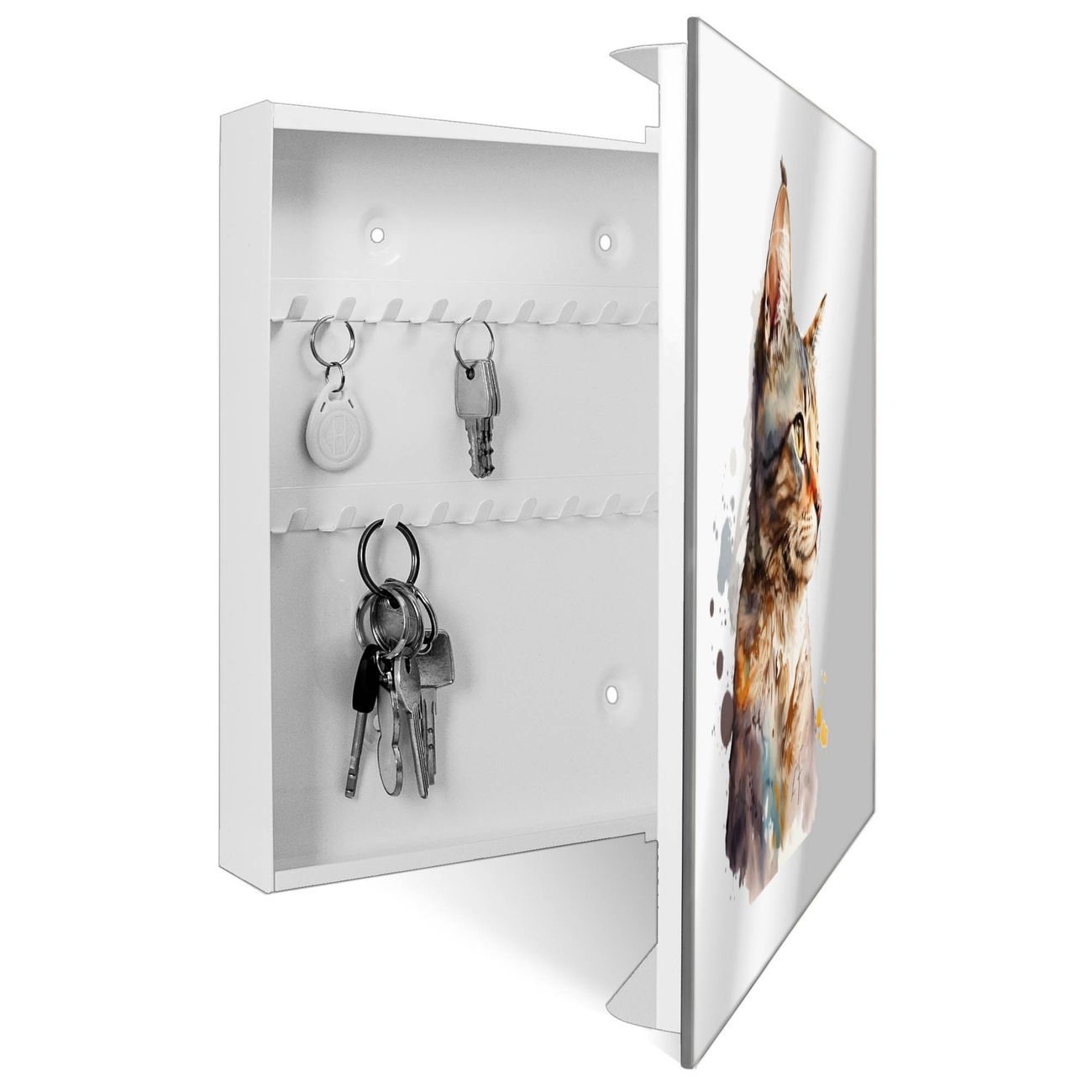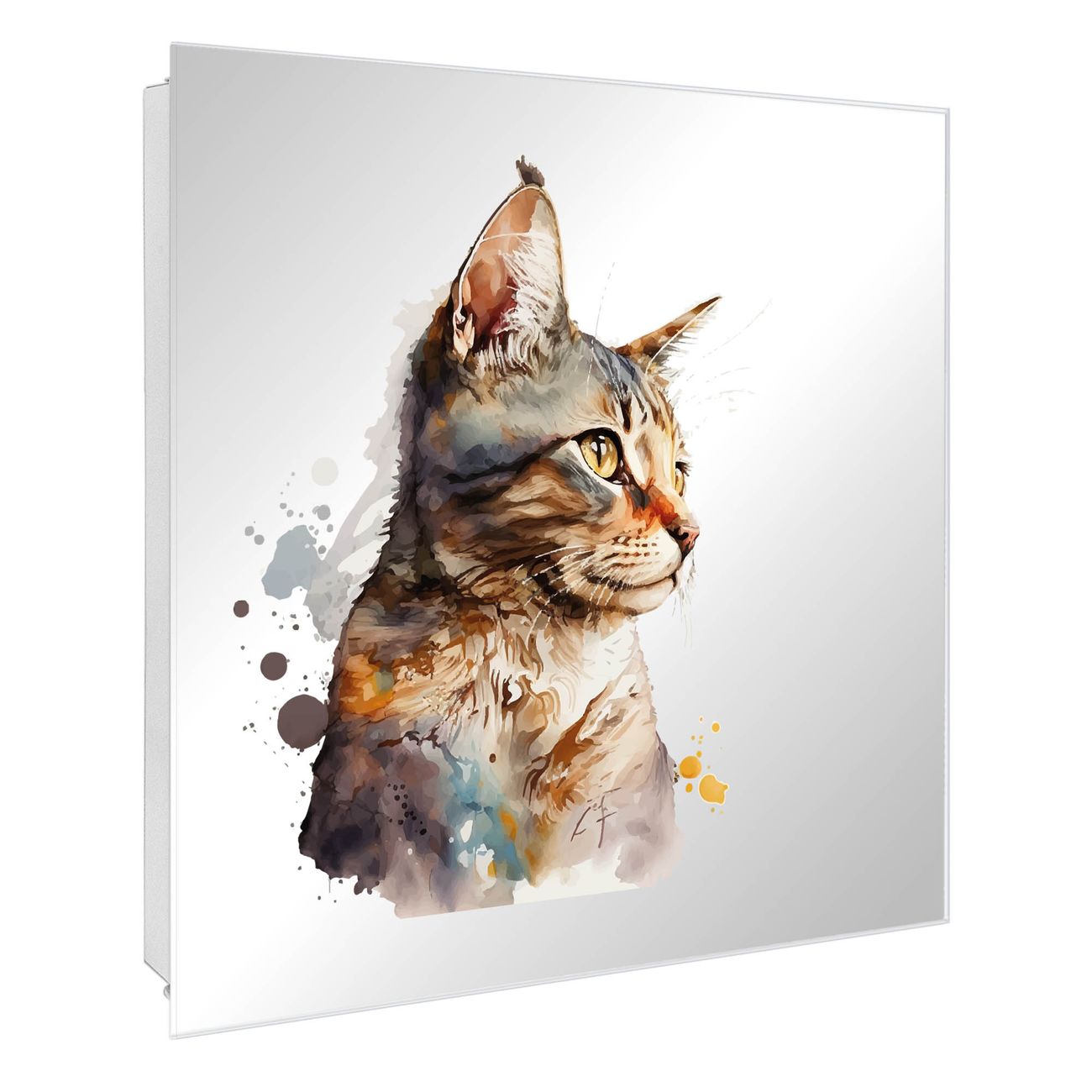 Spiegel Schlüsselkasten - Design Schlüsselbox Motiv Aquarellkatze