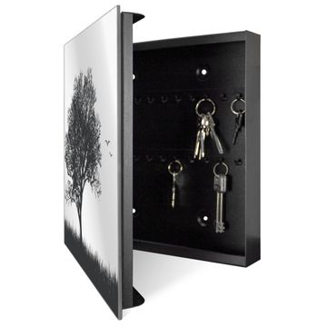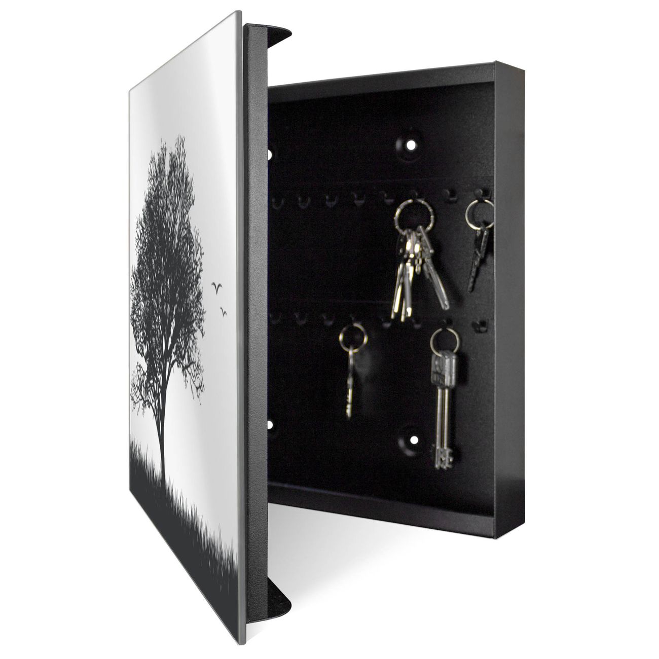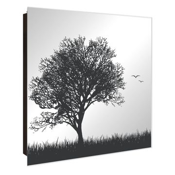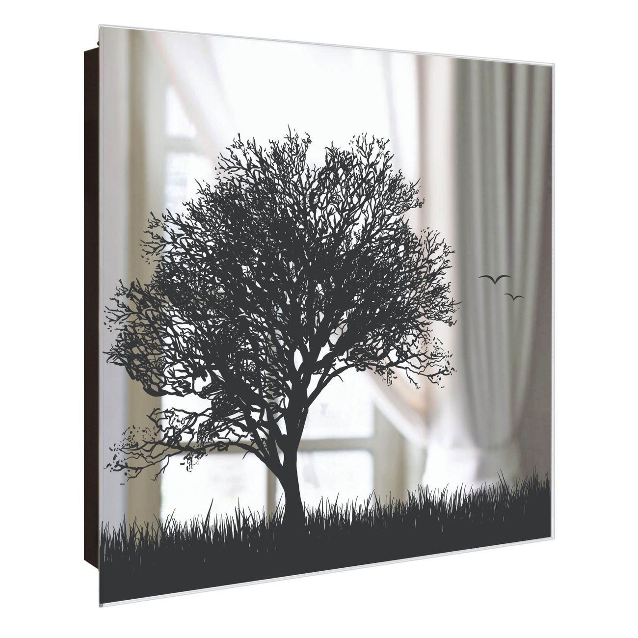 Spiegel Schlüsselkasten - Design Schlüsselbox Motiv Baum und Vögel Silhouette