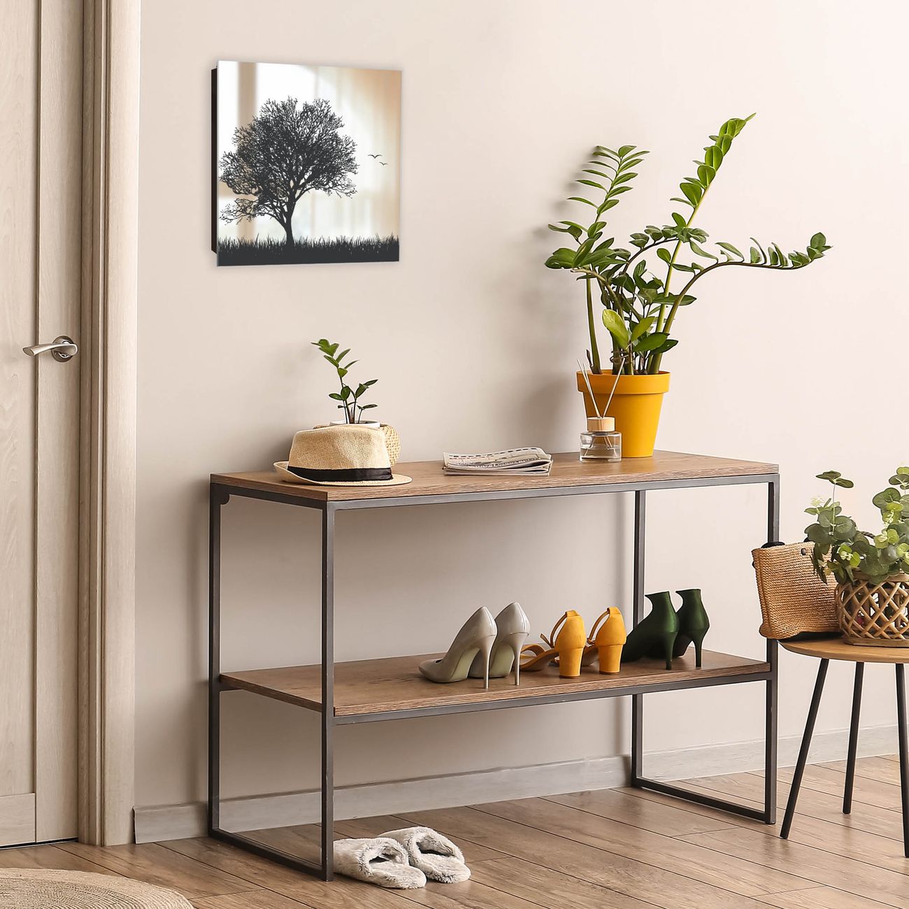 Bringe Ordnung und Stil in deinen Eingangsbereich mit dem banjado Schlüsselkasten mit Spiegel. Die elegante Spiegelfront kombiniert Funktionalität mit modernem Design und macht die Schlüsselaufbewahrung zu einem dekorativen Highlight. ✅ Spiegel Schlüsselaufbewahrung mit Motiv Motiv Baum und Vögel Silhouette Der Design-Schlüsselkasten Motiv Motiv Baum und Vögel Silhouette bietet Platz für bis zu 50 Schlüssel, die auf 5 stabilen Reihen mit je 10 Haken übersichtlich verstaut werden. Mit seinen kompakten Maßen von 30 x 30 x 5 cm passt die Schlüsselbox perfekt auch in kleinere Räume. Der schwarz lackierte Stahlkorpus mit rechts angeschlagenem Türscharnier harmoniert mit der Spiegelfront und fügt sich nahtlos in jedes Wohnambiente ein. Ob als Schlüsselorganizer für Zuhause oder als praktische Lösung für Büros, Praxen und Gewerbe, der banjado Schlüsselkasten sorgt für Ordnung und Übersicht. Die Spiegelfront verleiht dem Eingangsbereich zusätzliche Funktionalität und lässt Räume optisch größer wirken. Die Schlüsselbox Motiv Motiv Baum und Vögel Silhouette zur Wandmontage wird inklusive Befestigungsmaterial geliefert und ist schnell angebracht. So hast du deine Schlüssel jederzeit griffbereit und zugleich stilvoll verstaut. Mit diesem banjado Schlüsselkasten Motiv Motiv Baum und Vögel Silhouette kombinierst du praktische Aufbewahrung mit stilvollem Wohndesign. Ob privat oder geschäftlich, die Schlüsselbox sorgt für mehr Ordnung, Übersicht und ein wohnliches Ambiente.Vorteile im Überblick