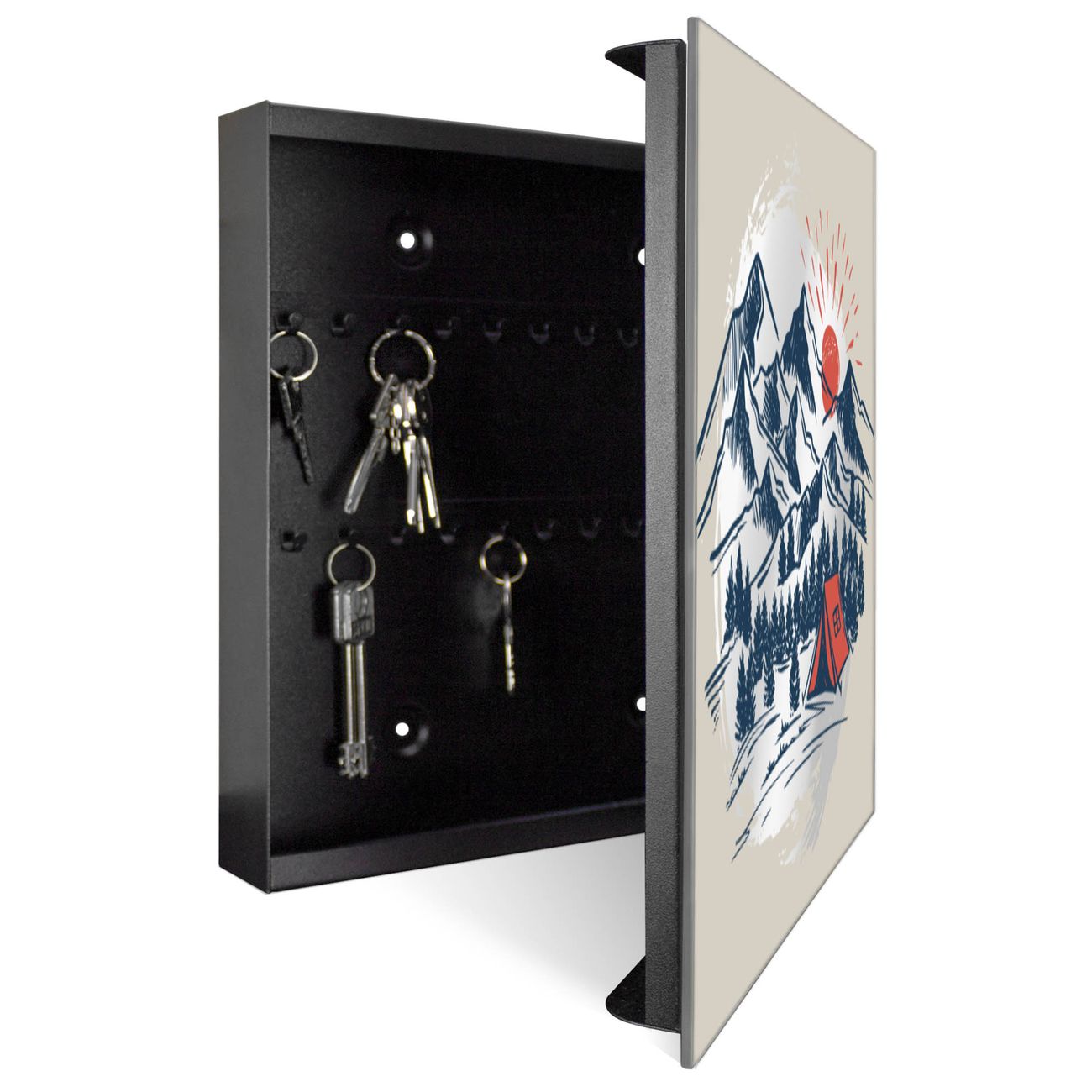 Spiegel Schlüsselkasten - Design Schlüsselbox Motiv Bergcamping Abenteuer