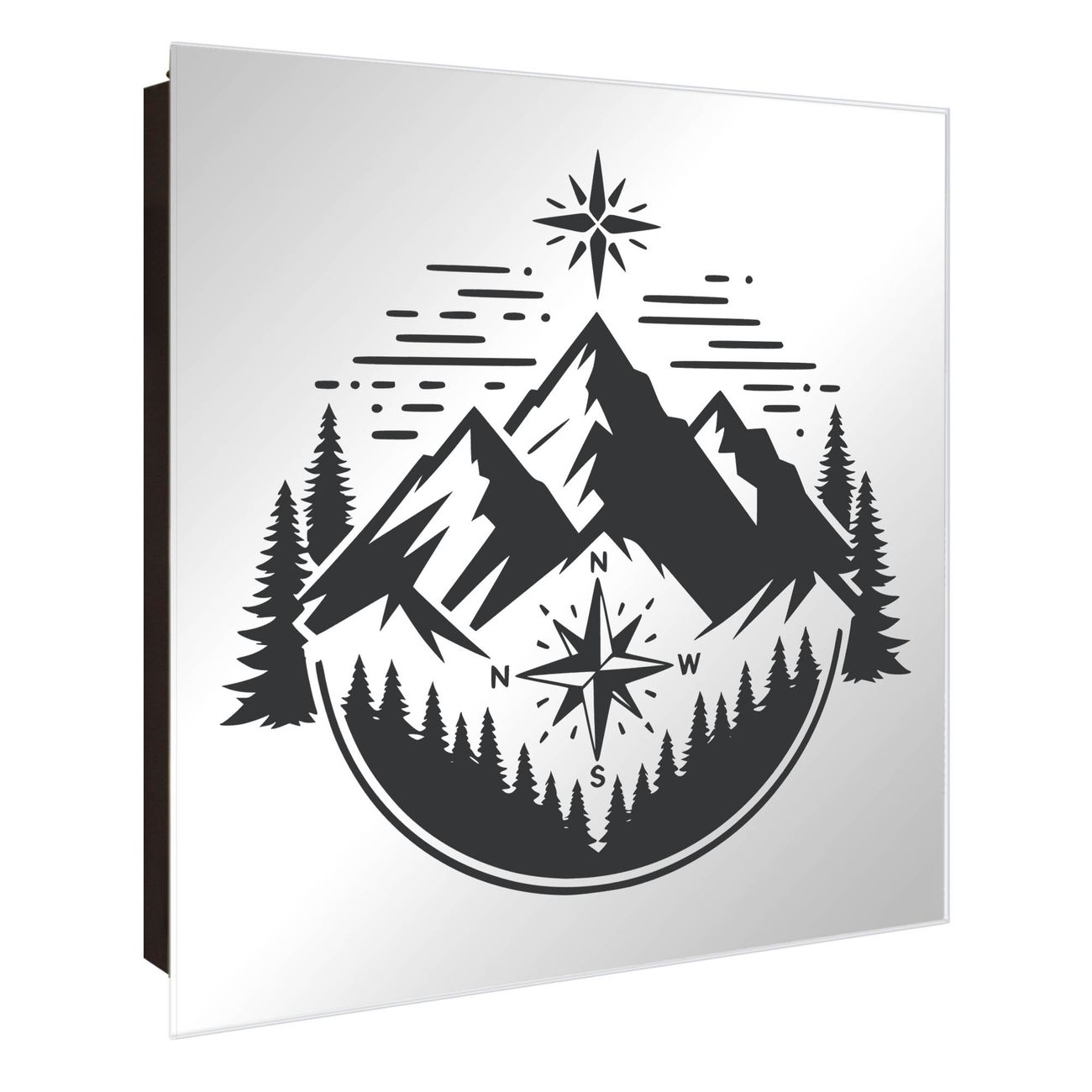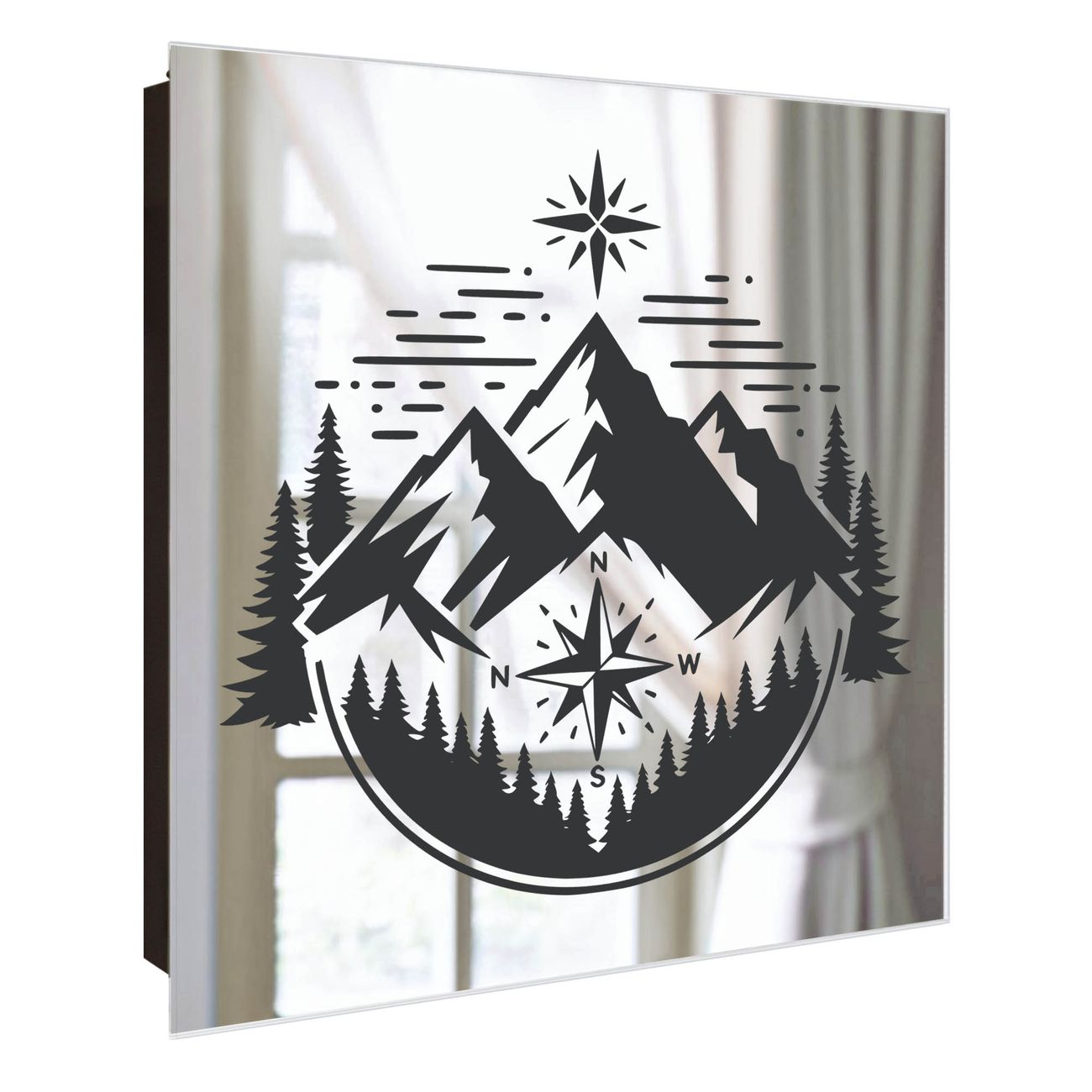 Spiegel Schlüsselkasten - Design Schlüsselbox Motiv Bergkompass