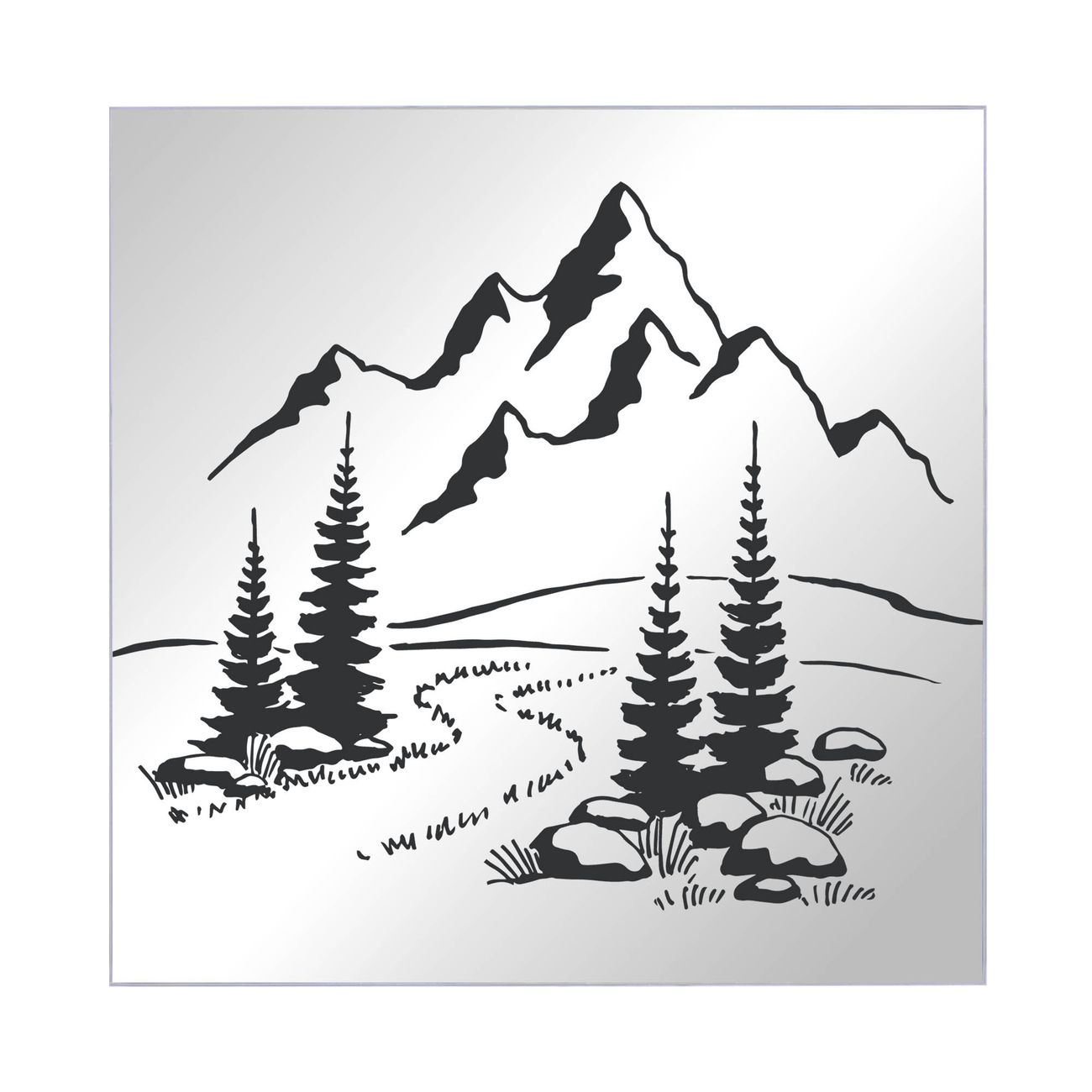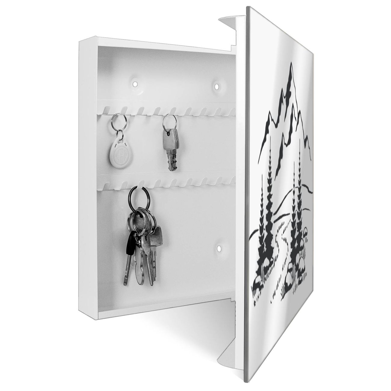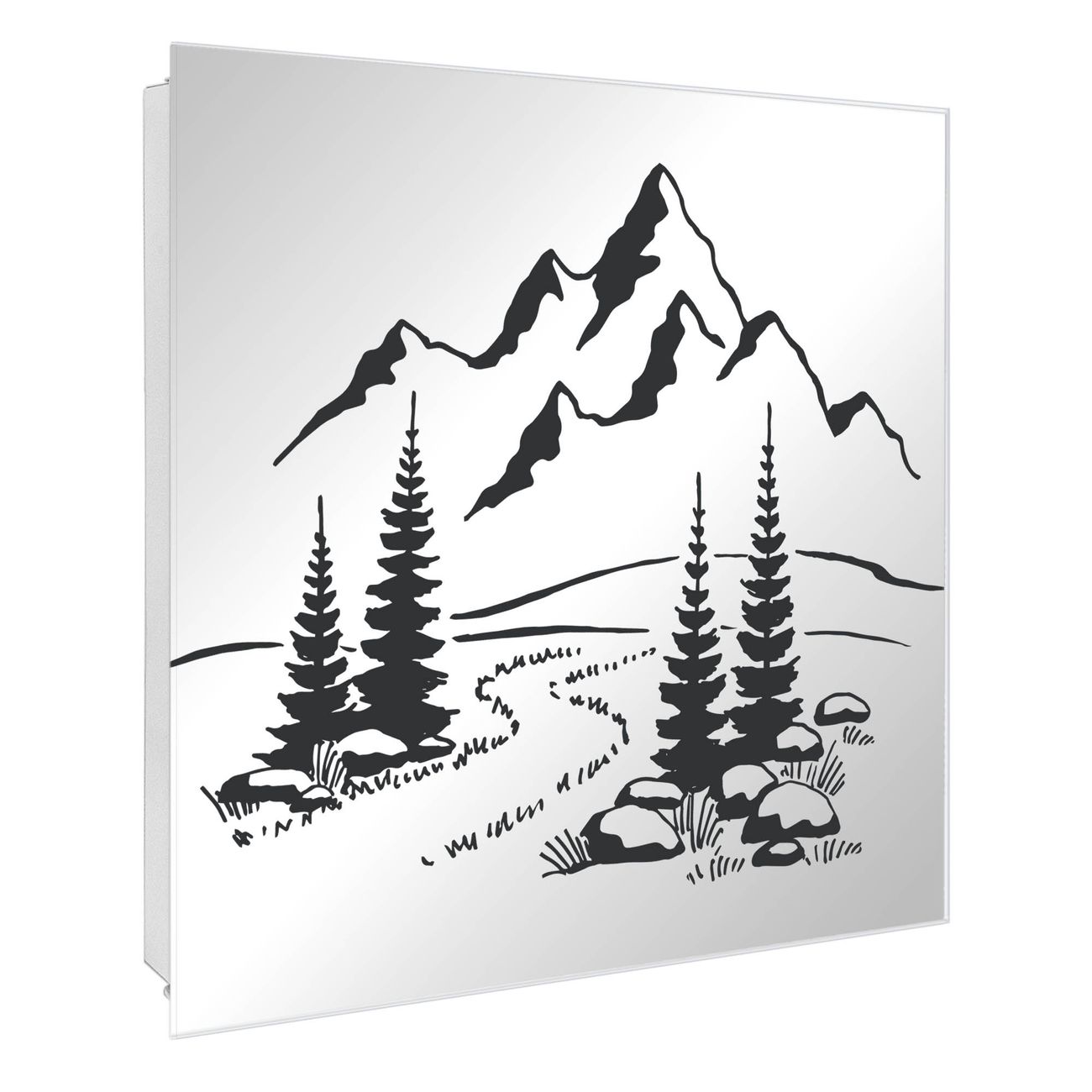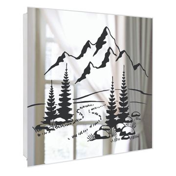 Spiegel Schlüsselkasten - Design Schlüsselbox Motiv Berglandschaft Zeichnung