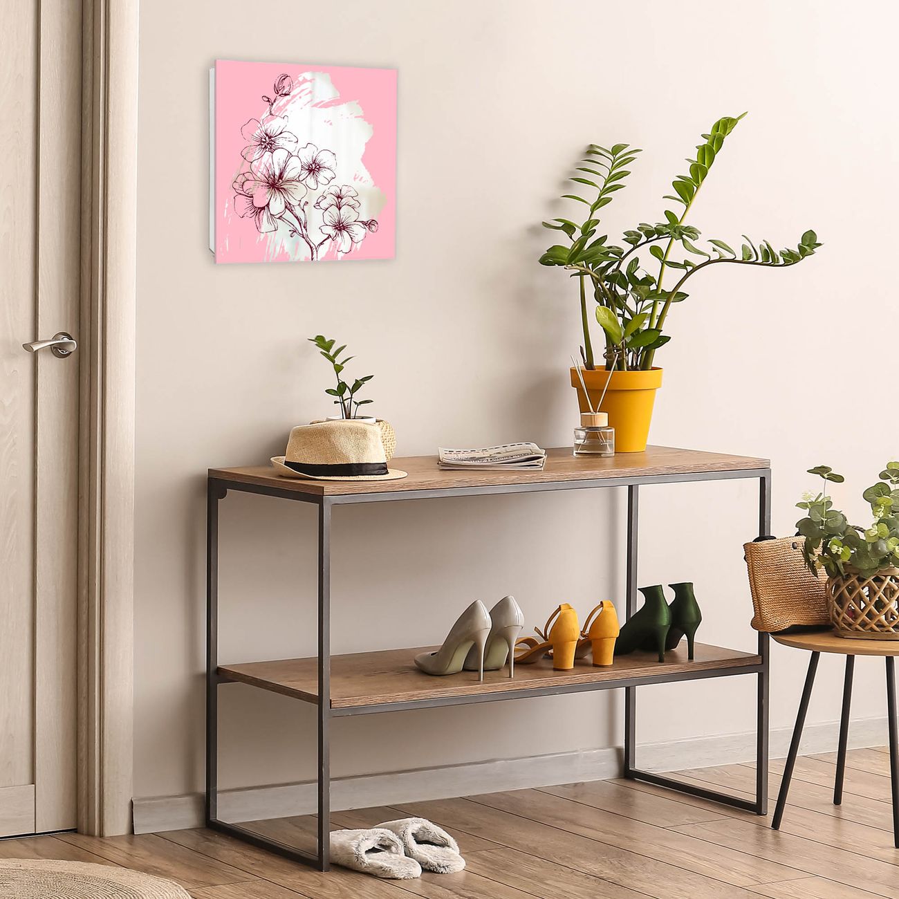 Bringe Ordnung und Stil in deinen Eingangsbereich mit dem banjado Schlüsselkasten mit Spiegel. Die elegante Spiegelfront kombiniert Funktionalität mit modernem Design und macht die Schlüsselaufbewahrung zu einem dekorativen Highlight. ✅ Spiegel Schlüsselaufbewahrung mit Motiv Motiv Blütenpracht Der Design-Schlüsselkasten Motiv Motiv Blütenpracht bietet Platz für bis zu 50 Schlüssel, die auf 5 stabilen Reihen mit je 10 Haken übersichtlich verstaut werden. Mit seinen kompakten Maßen von 30 x 30 x 5 cm passt die Schlüsselbox perfekt auch in kleinere Räume. Der weiß lackierte Stahlkorpus mit rechts angeschlagenem Türscharnier harmoniert mit der Spiegelfront und fügt sich nahtlos in jedes Wohnambiente ein. Ob als Schlüsselorganizer für Zuhause oder als praktische Lösung für Büros, Praxen und Gewerbe, der banjado Schlüsselkasten sorgt für Ordnung und Übersicht. Die Spiegelfront verleiht dem Eingangsbereich zusätzliche Funktionalität und lässt Räume optisch größer wirken. Die Schlüsselbox Motiv Motiv Blütenpracht zur Wandmontage wird inklusive Befestigungsmaterial geliefert und ist schnell angebracht. So hast du deine Schlüssel jederzeit griffbereit und zugleich stilvoll verstaut. Mit diesem banjado Schlüsselkasten Motiv Motiv Blütenpracht kombinierst du praktische Aufbewahrung mit stilvollem Wohndesign. Ob privat oder geschäftlich, die Schlüsselbox sorgt für mehr Ordnung, Übersicht und ein wohnliches Ambiente.Vorteile im Überblick