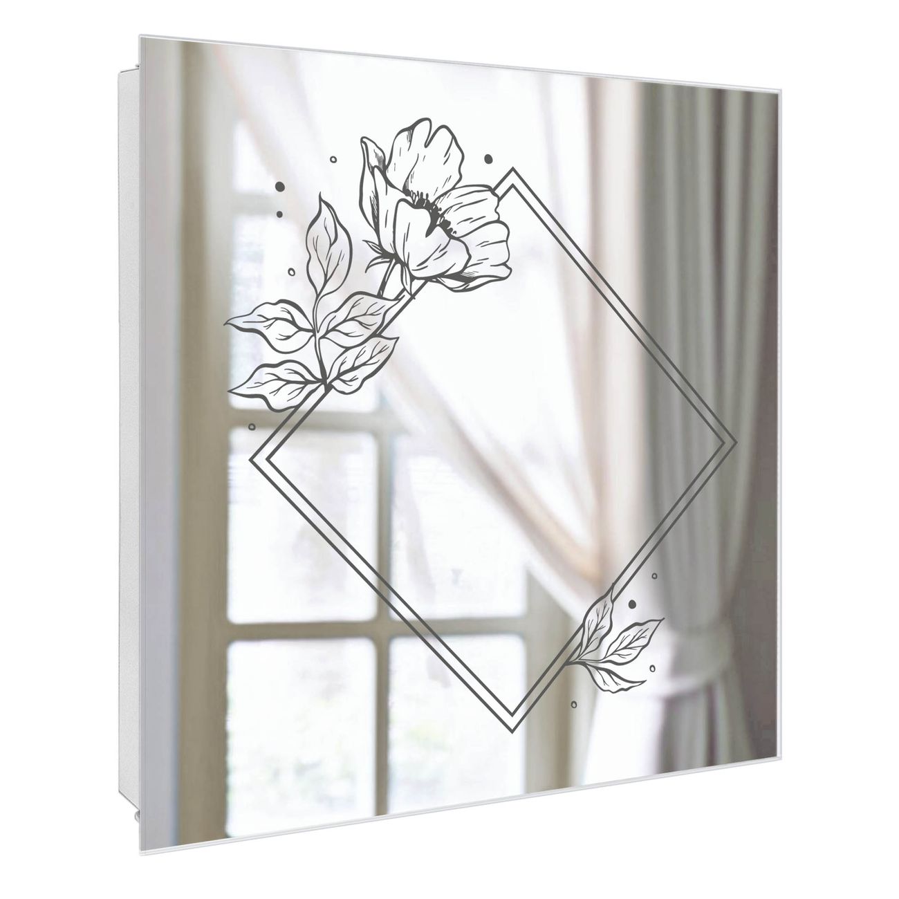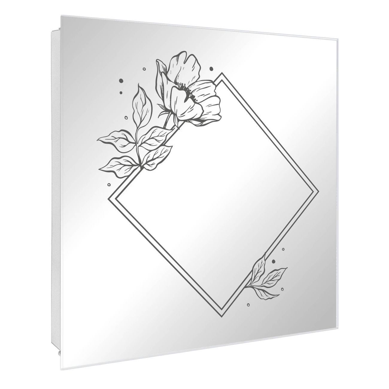 Spiegel Schlüsselkasten - Design Schlüsselbox Motiv Blütenrahmen